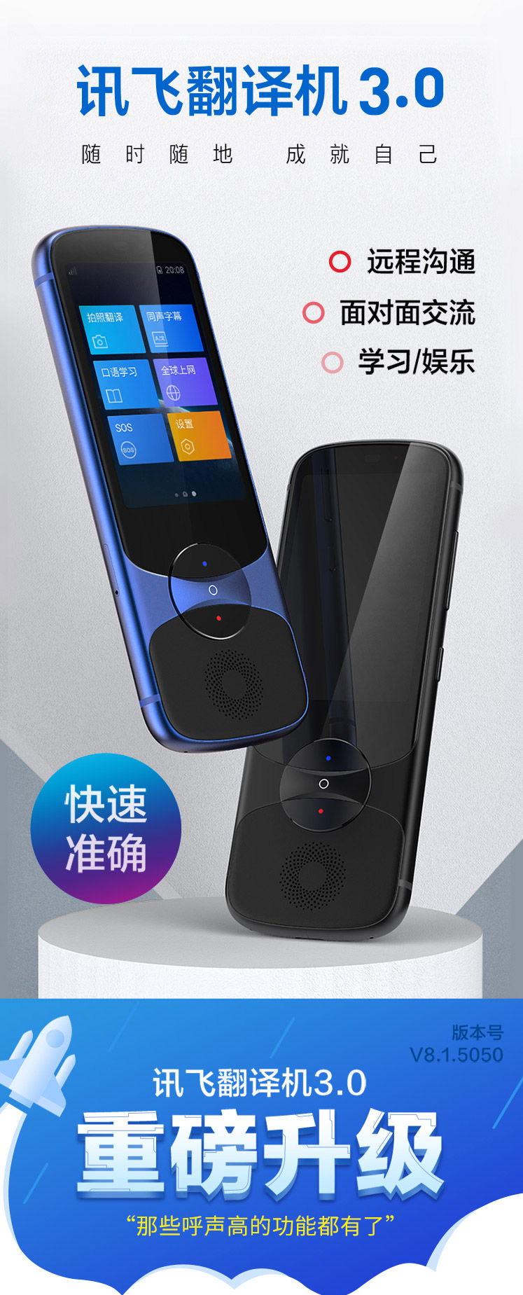 ¥26.00科大讯飞翻译机3.0 多语种离线翻译器翻译棒 同声方言翻译笔出国旅游口语翻译神器电子词典 墨研黑