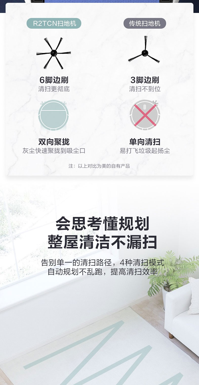 美的(Midea)扫地机器人R2TCN 扫拖一体机 环境感应 真空吸口 4种清扫模式