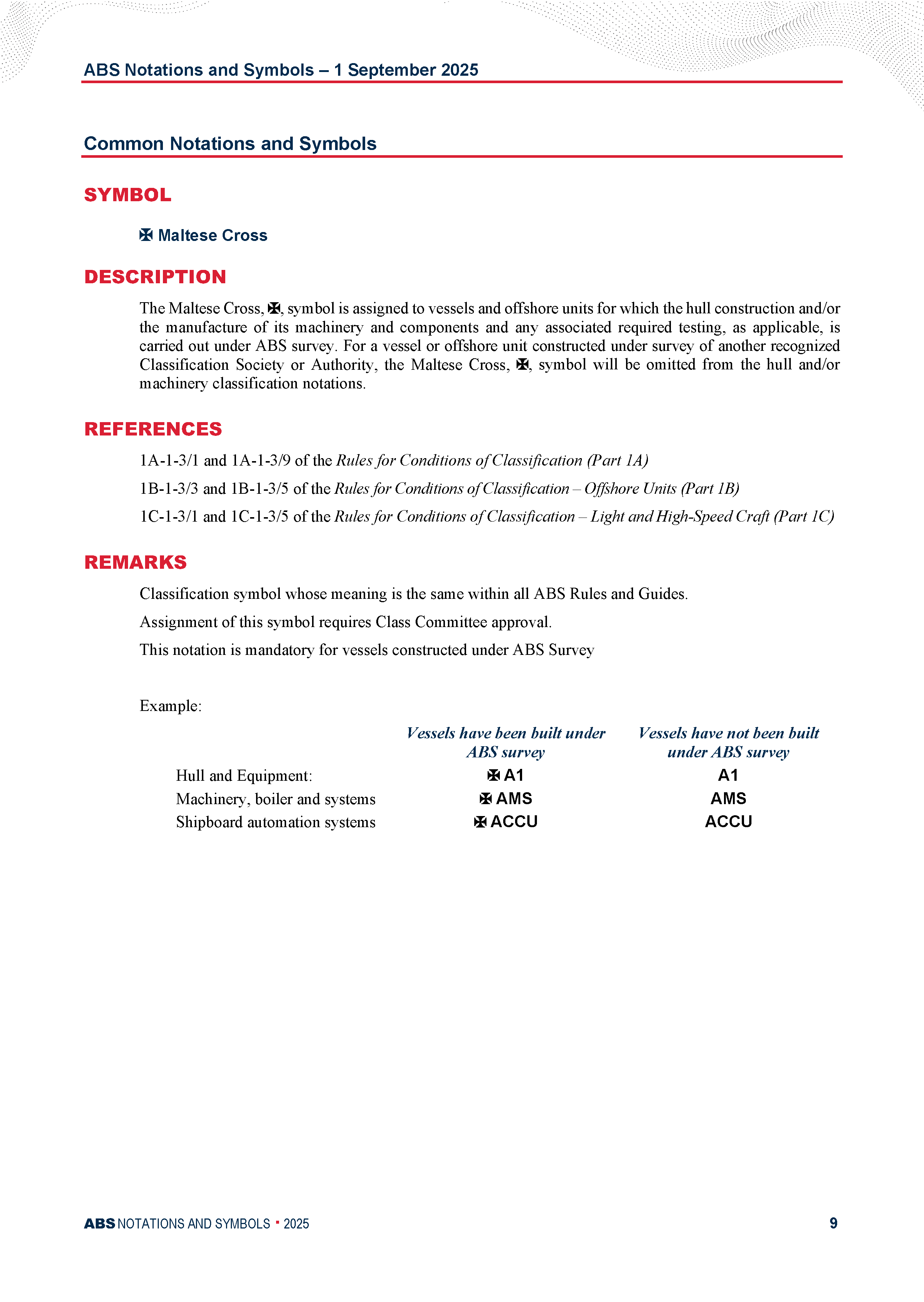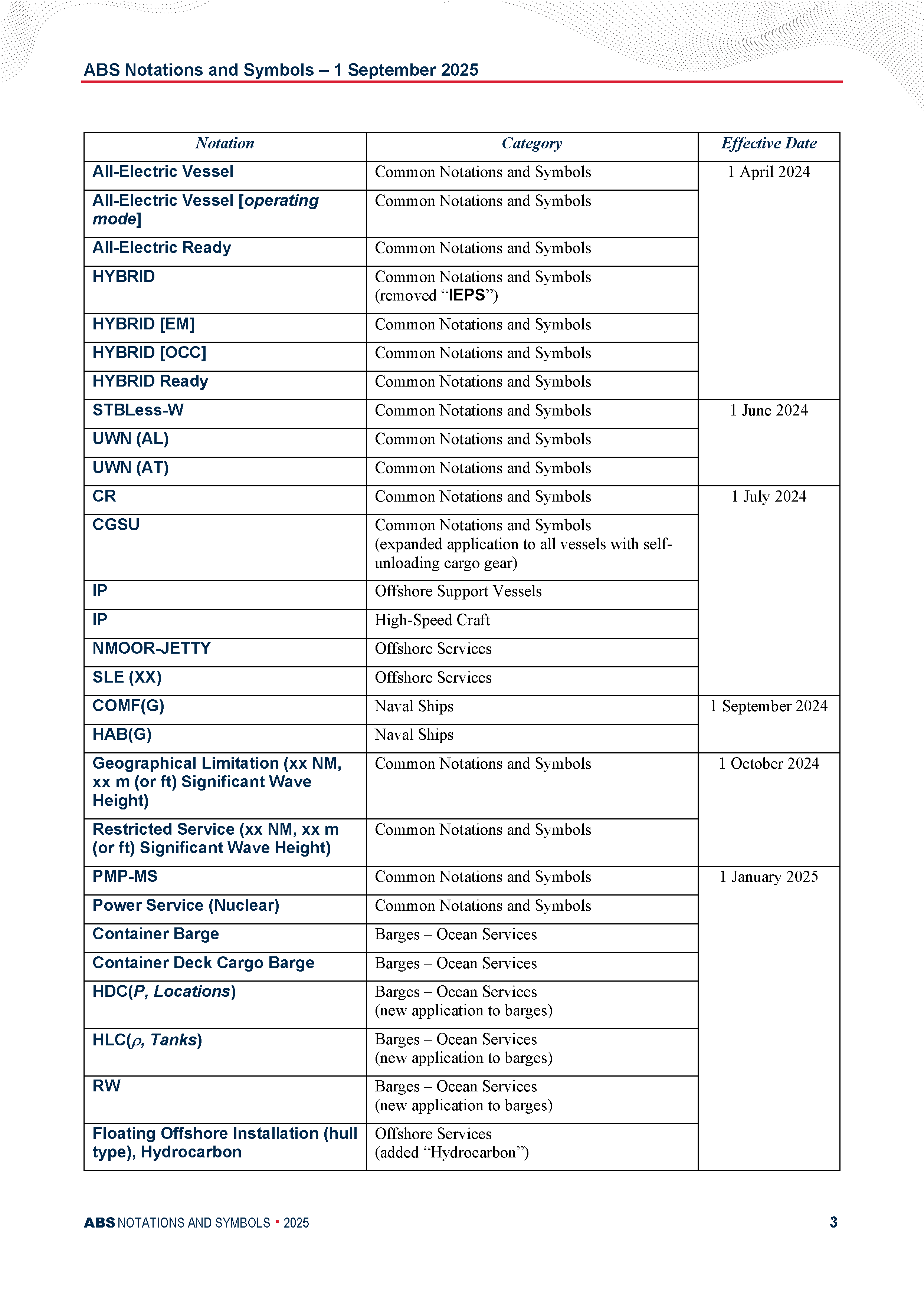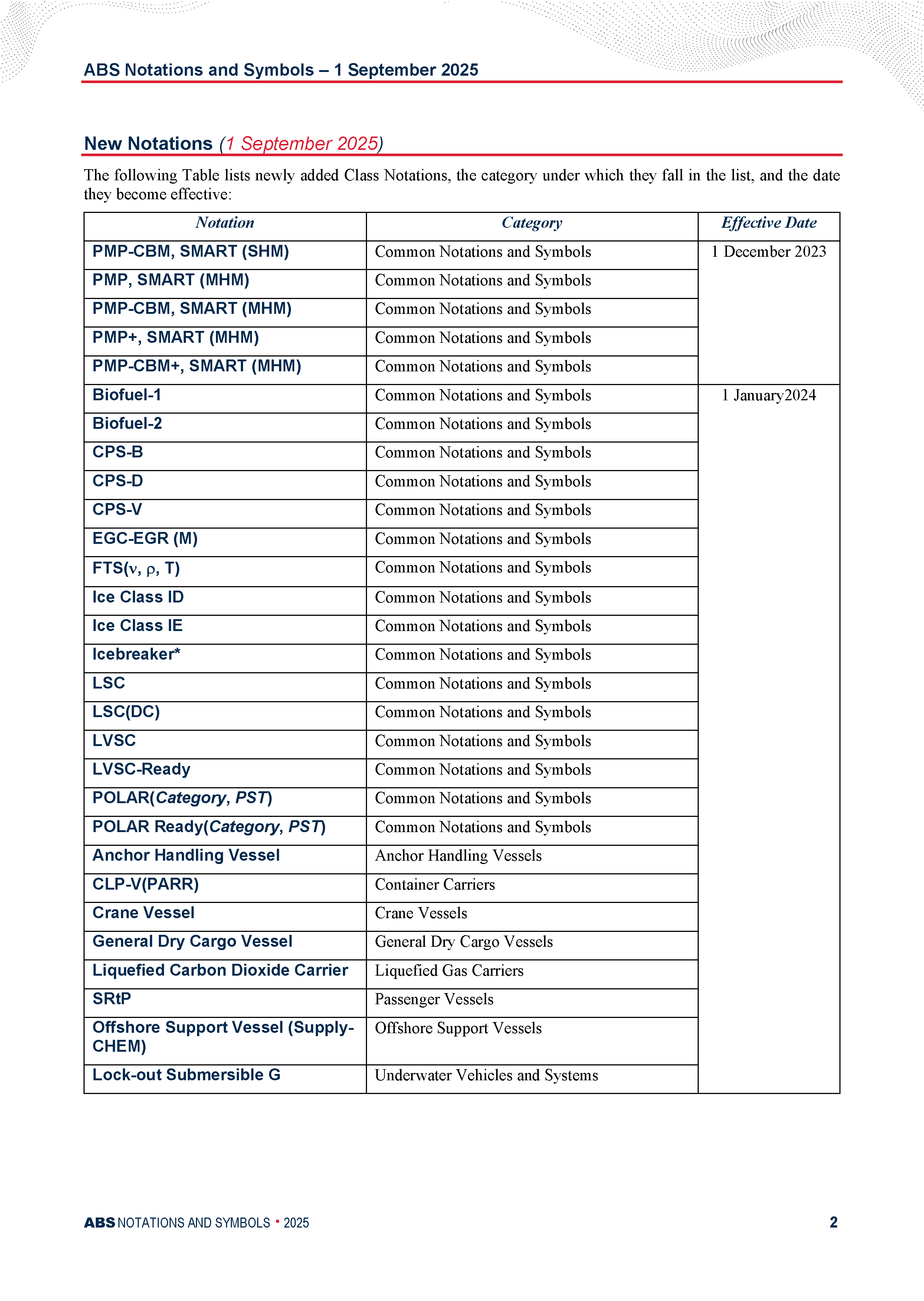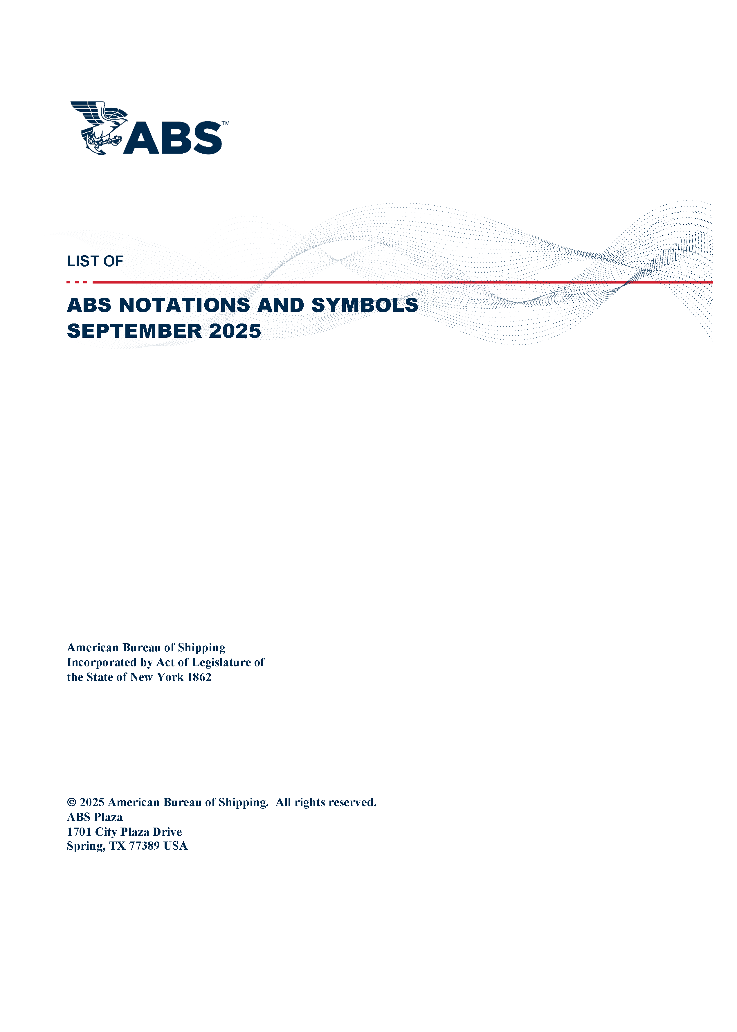 List of ABS Notations and Symbols (09-2025) 造船符号列表