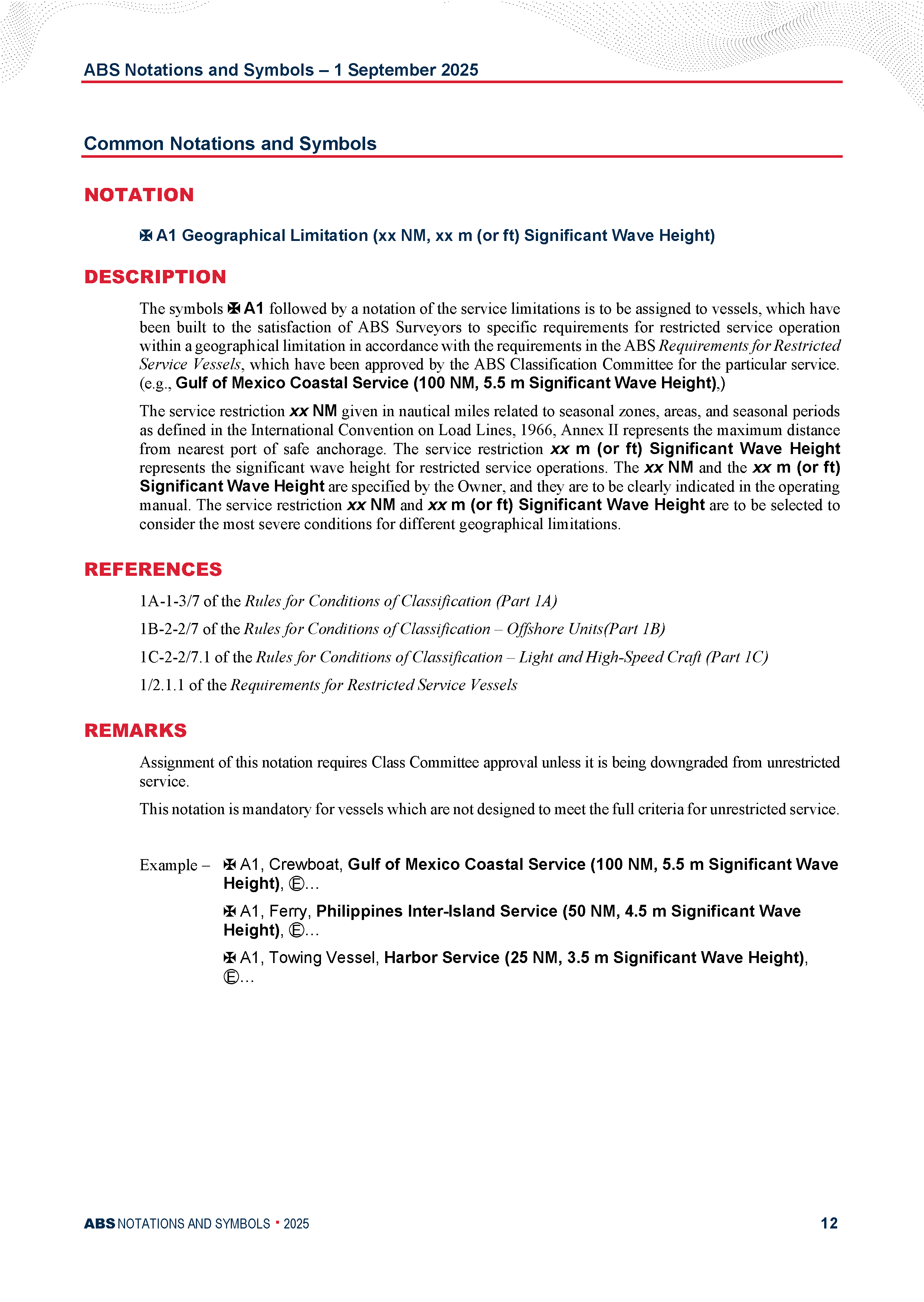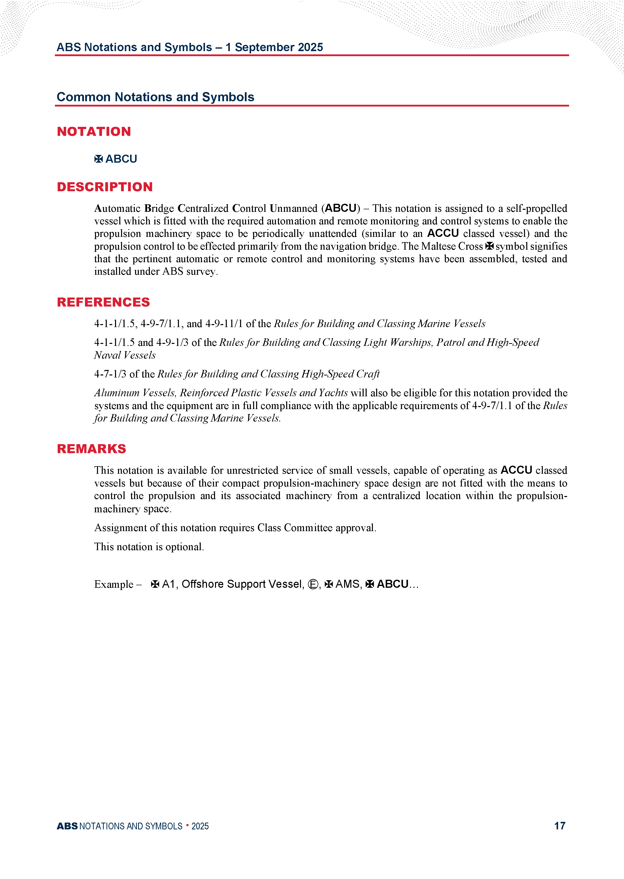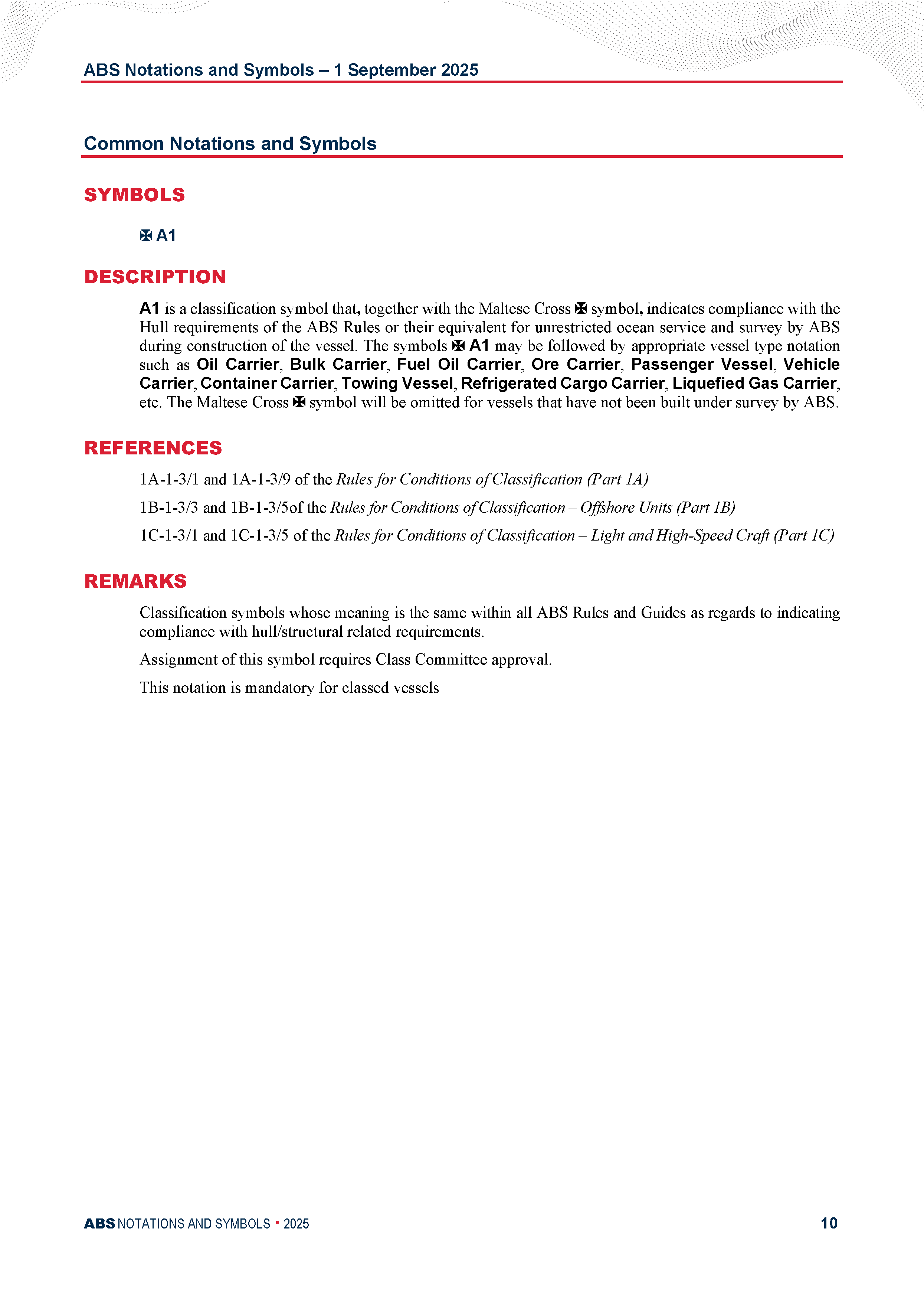 List of ABS Notations and Symbols (09-2025) 造船符号列表
