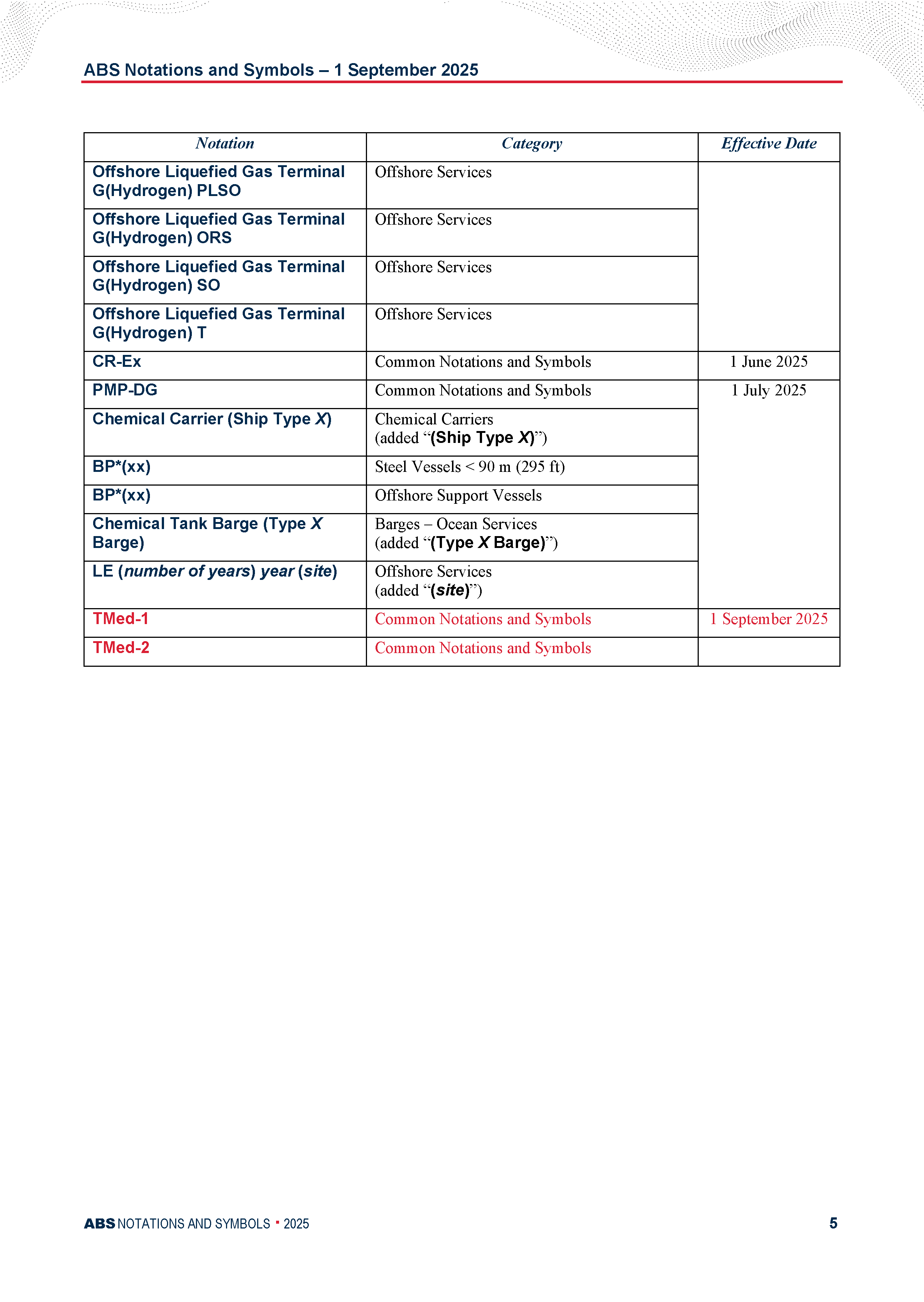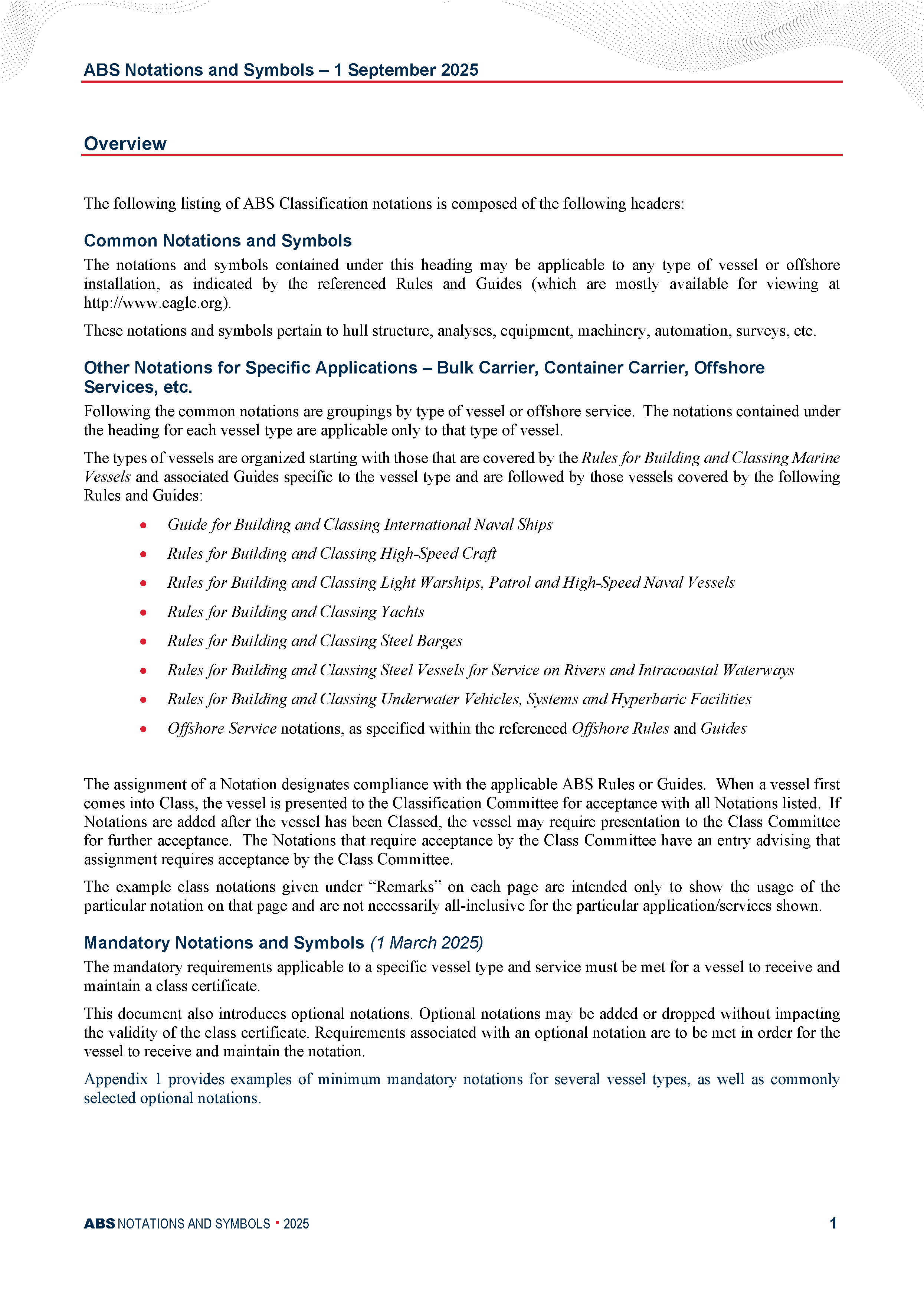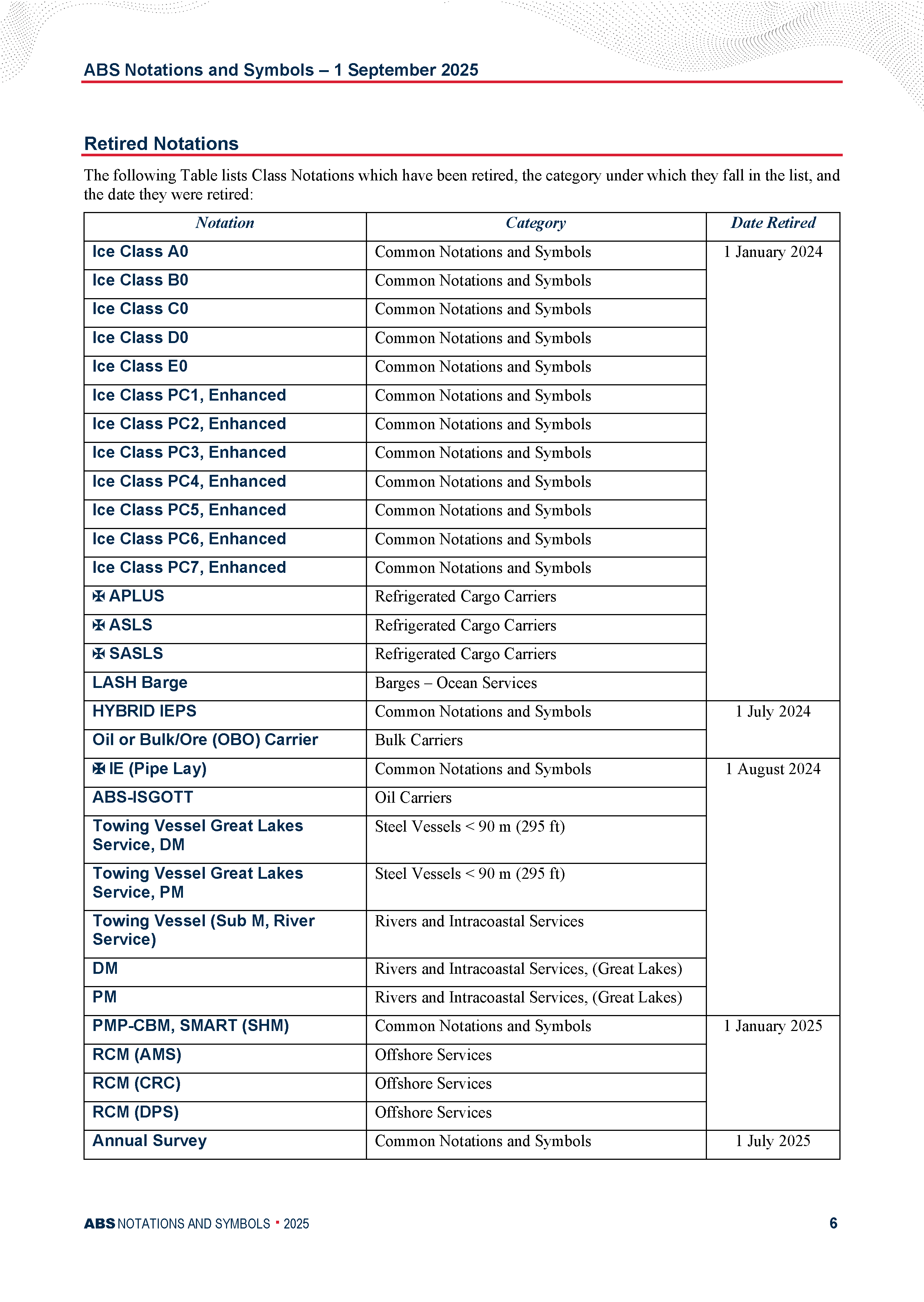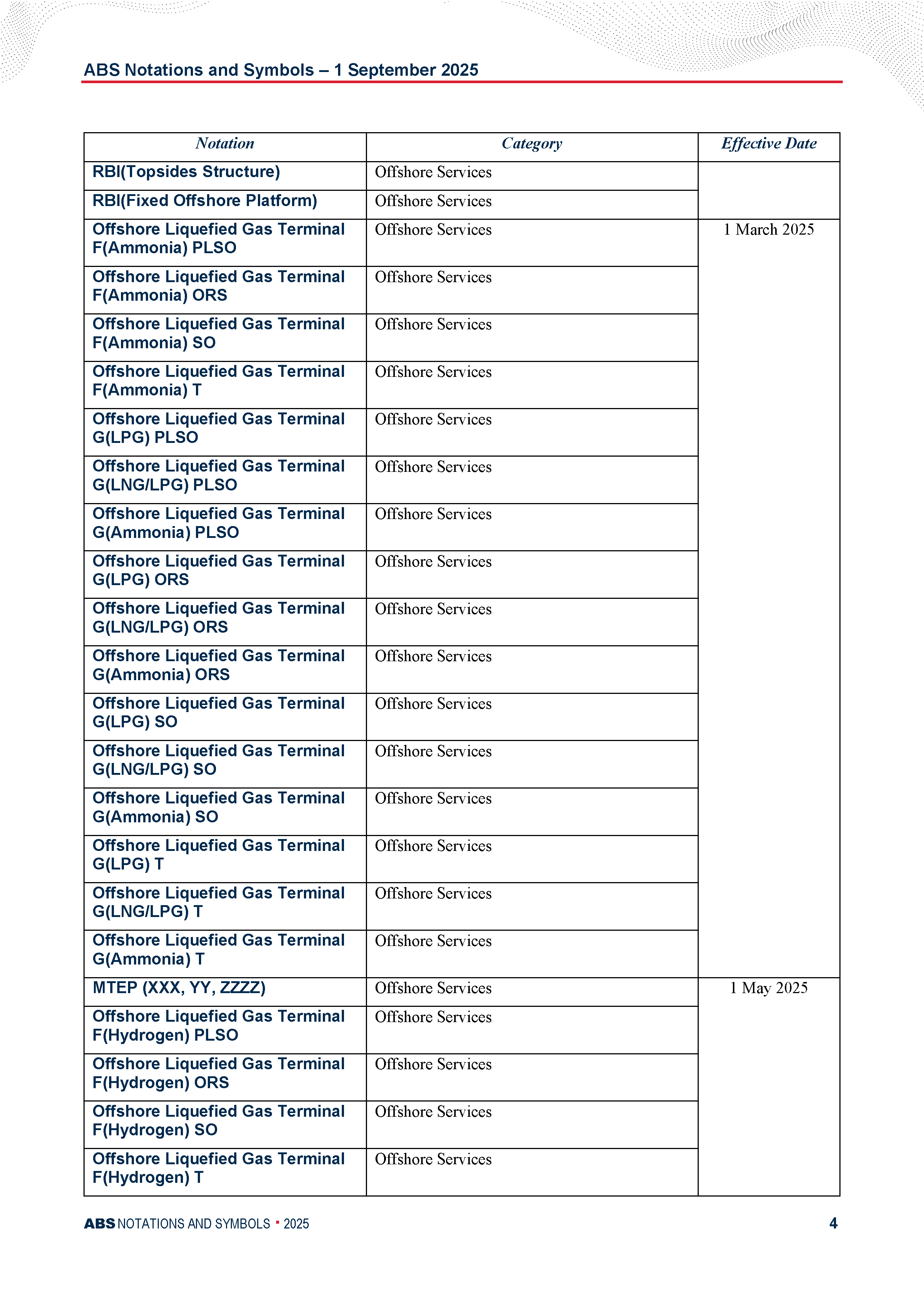 List of ABS Notations and Symbols (09-2025) 造船符号列表