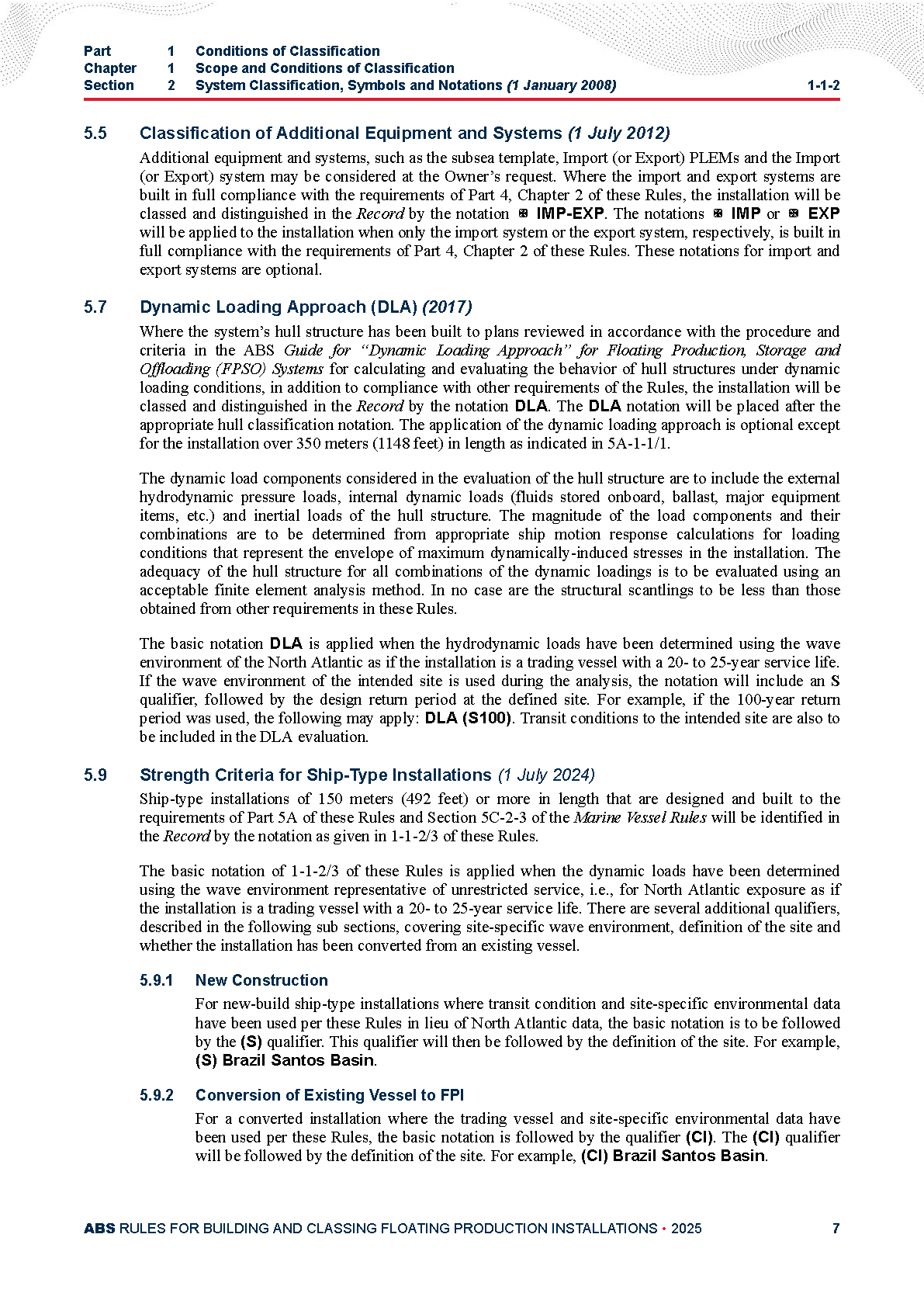 Rules for Building and Classing Floating Production Installations (07-2025) 浮式生产设施的建造和入级规范