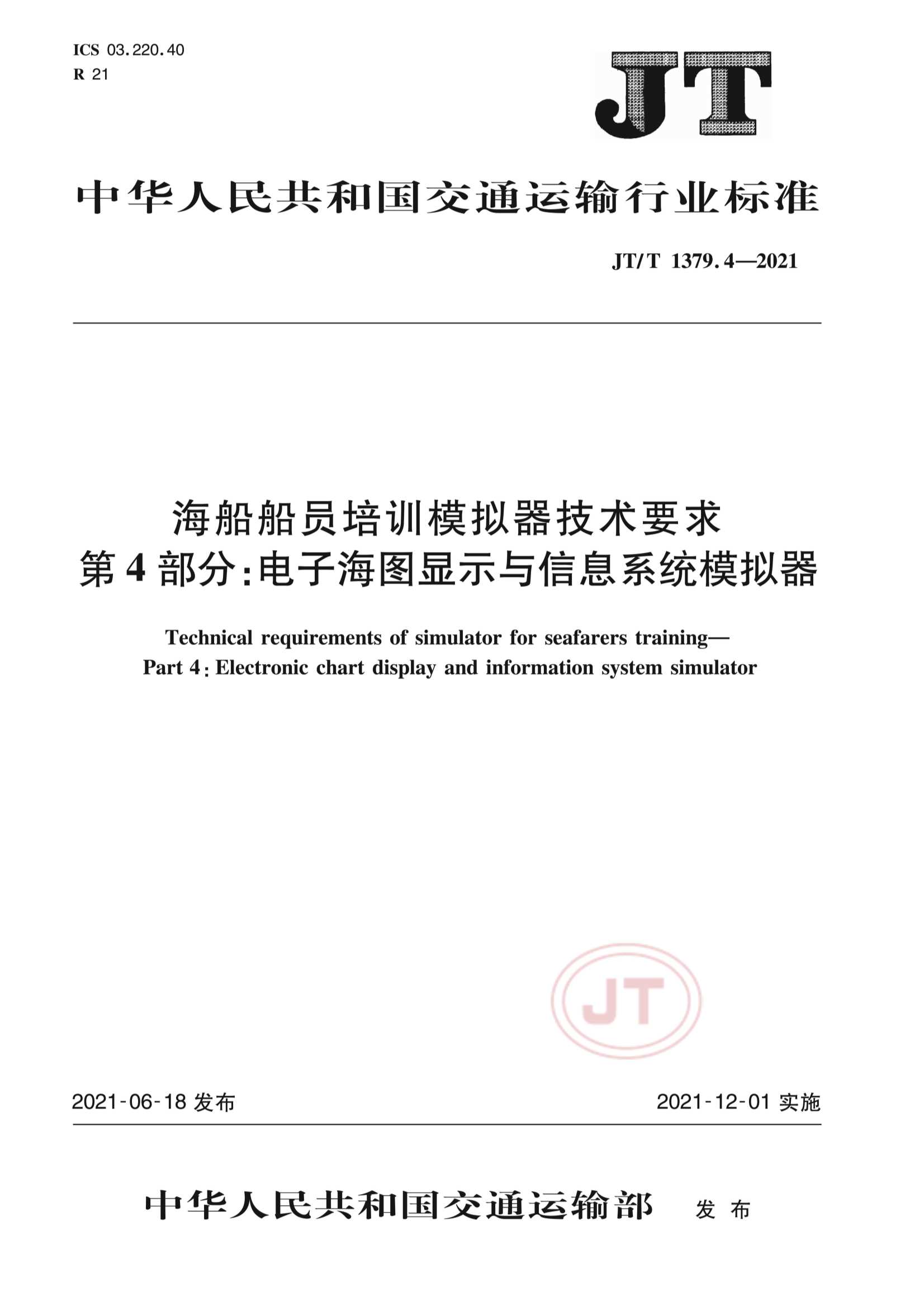 JT/T 1379.4-2021 海船船员培训模拟器技术要求 第4部分:电子海图显示与信息系统模拟器
