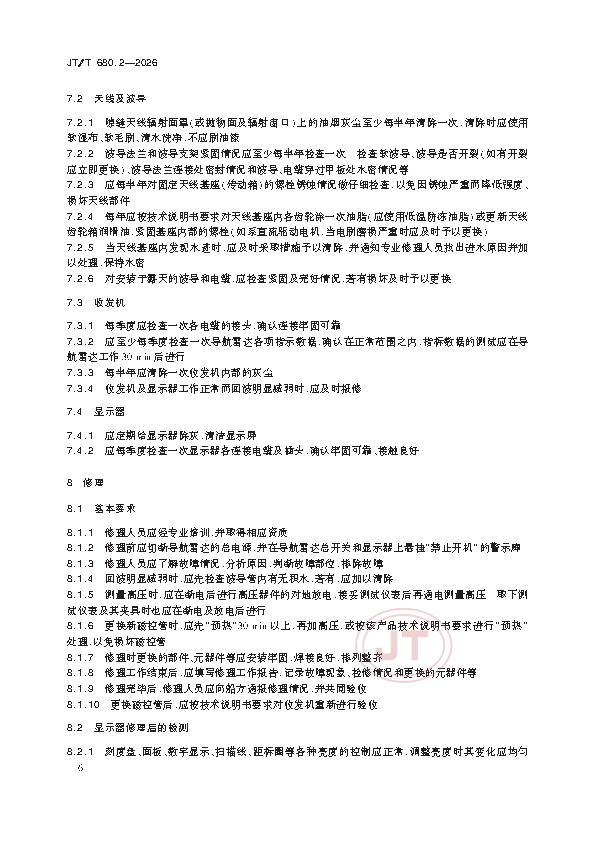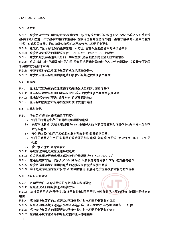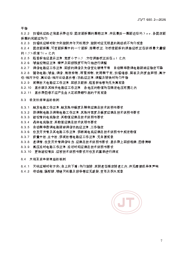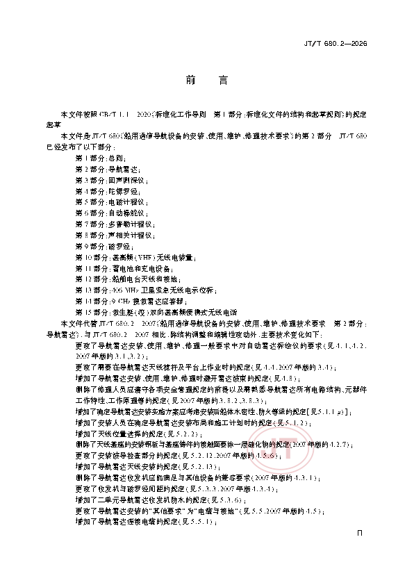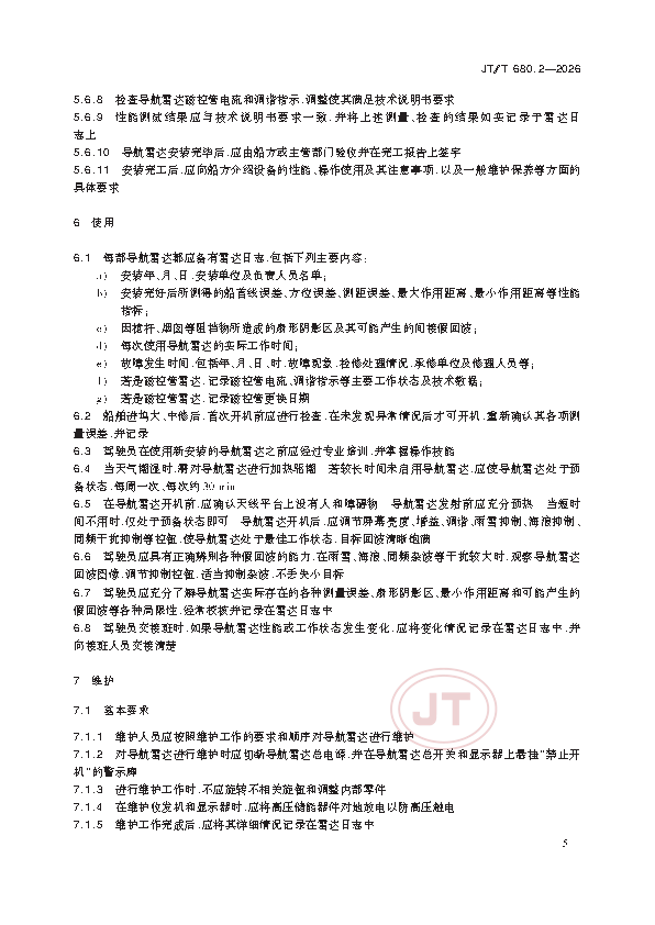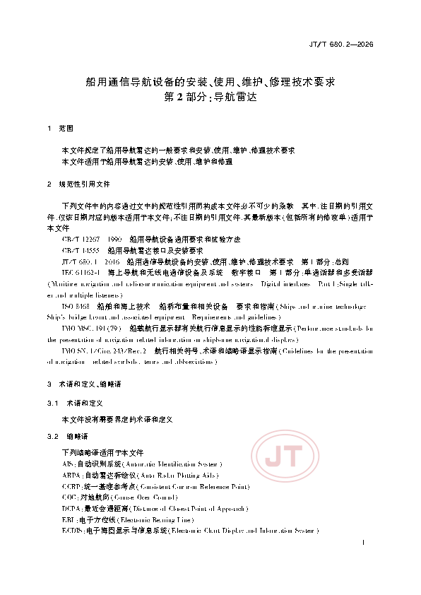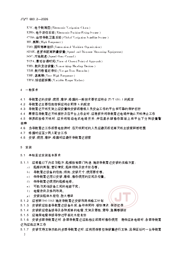 JT/T 680.2-2026 船用通信导航设备的安装、使用、维护、修理技术要求 第2部分:导航雷达