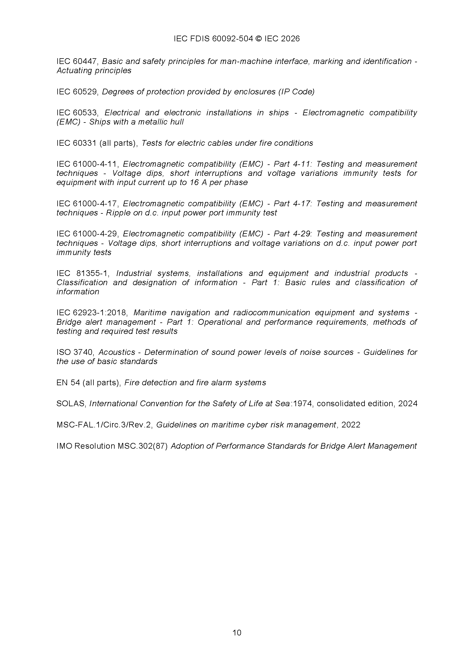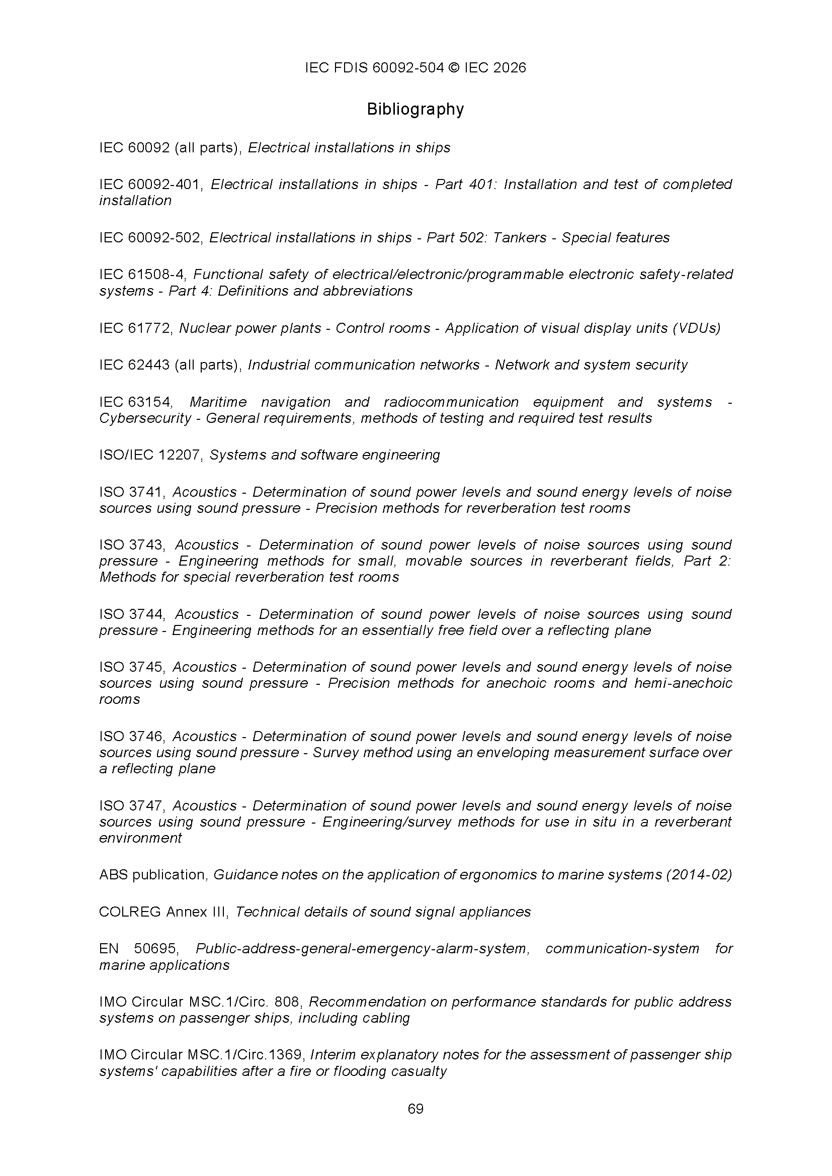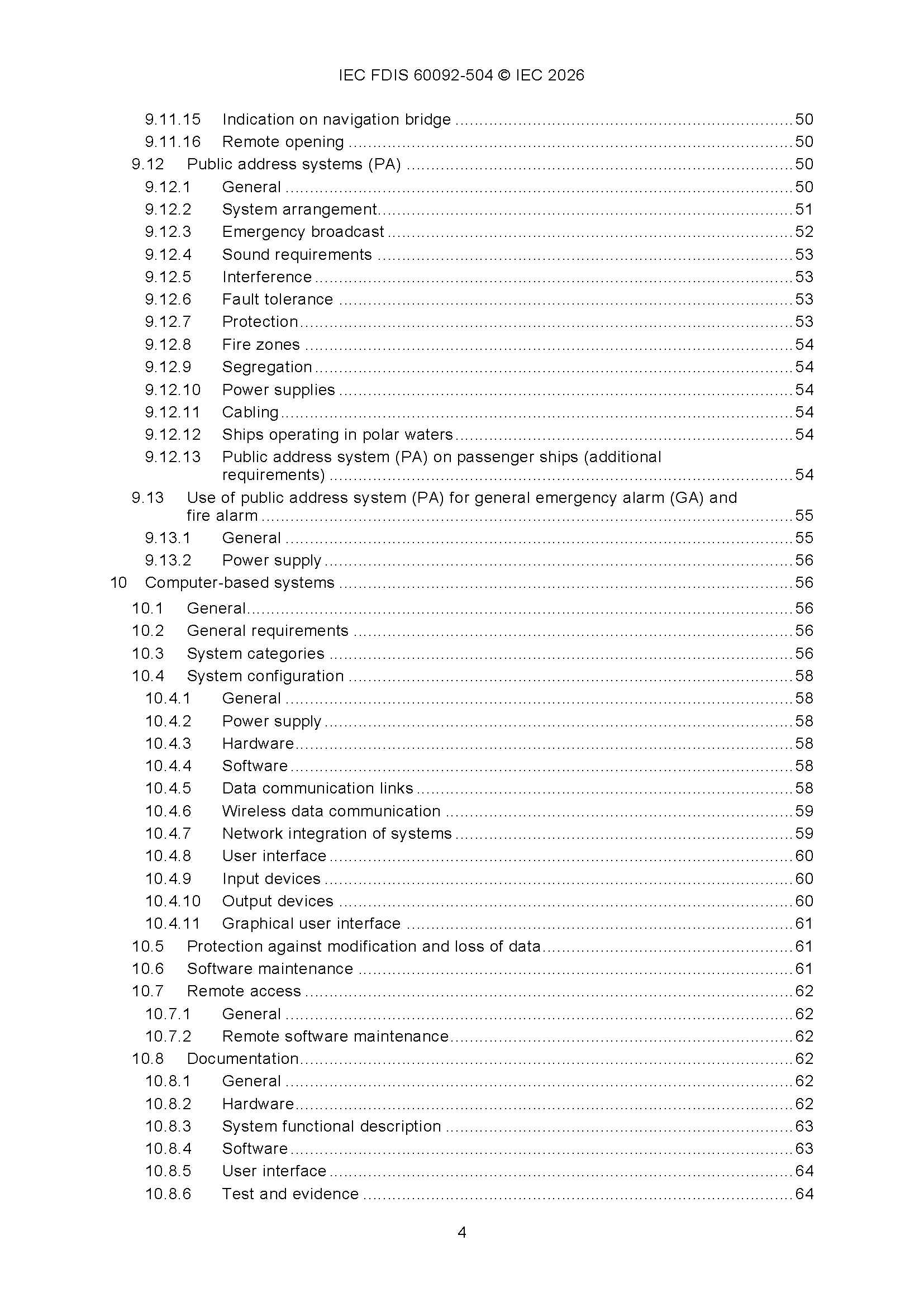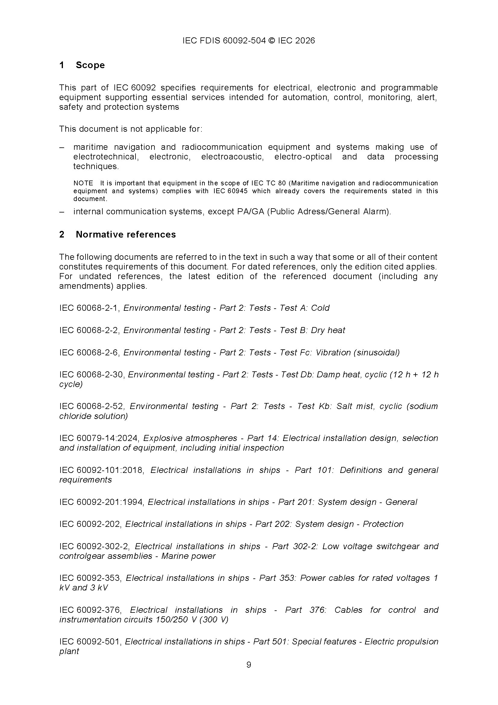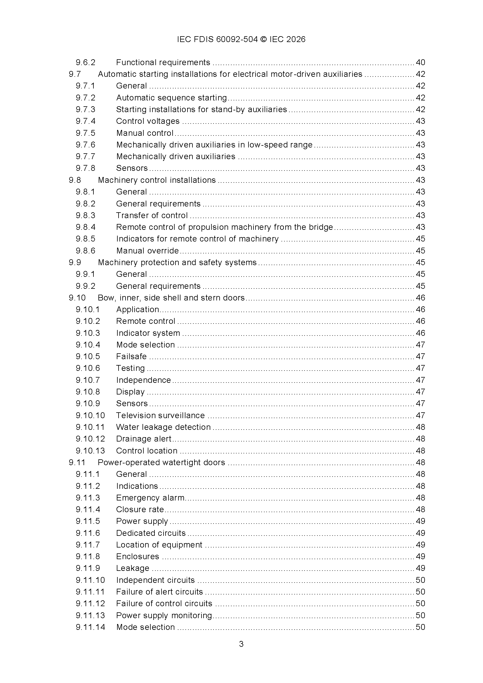 IEC 60092-504 (01-2026)(Ed5.0) Electrical Installations in Ships – Part 504 Automation, Control and Instrumentation 船舶电气设备 - 第504部分 自动化、控制和仪表