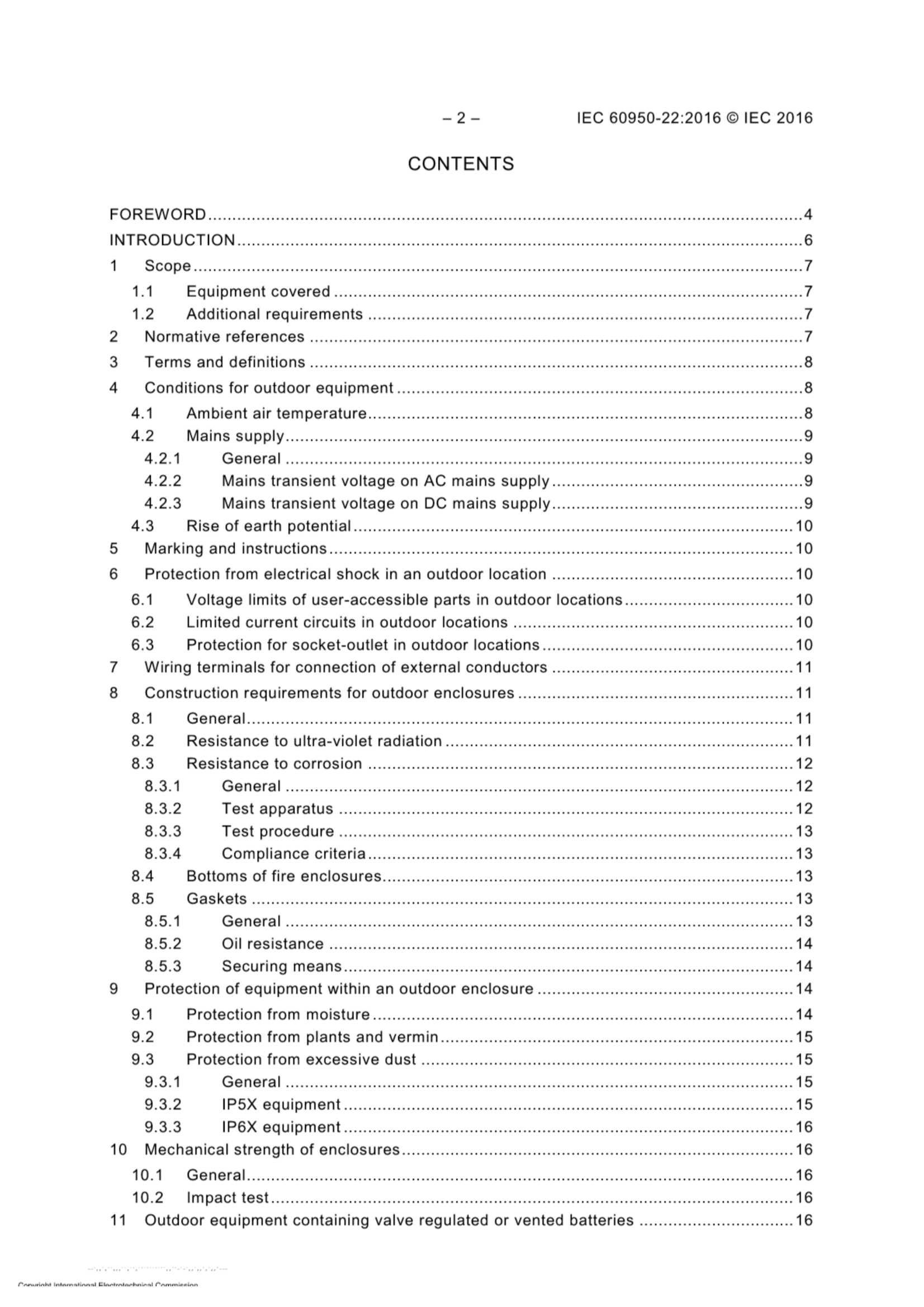 IEC 60950-22 (2016)(Ed2.0) Information Technology Equipment – Safety – Part 22 Equipment to Be Installed Outdoors 信息技术设备 - 安全 - 第22部分 室外安装的设备