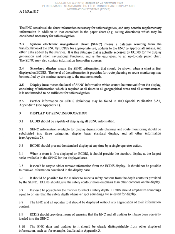 A.817(19) PERFORMANCE STANDARDS FOR ELECTRONIC CHART DISPLAY AND INFORMATION SYSTEMS (ECDIS) 电子海图显示和信息系统(ECDIS)的性能标准