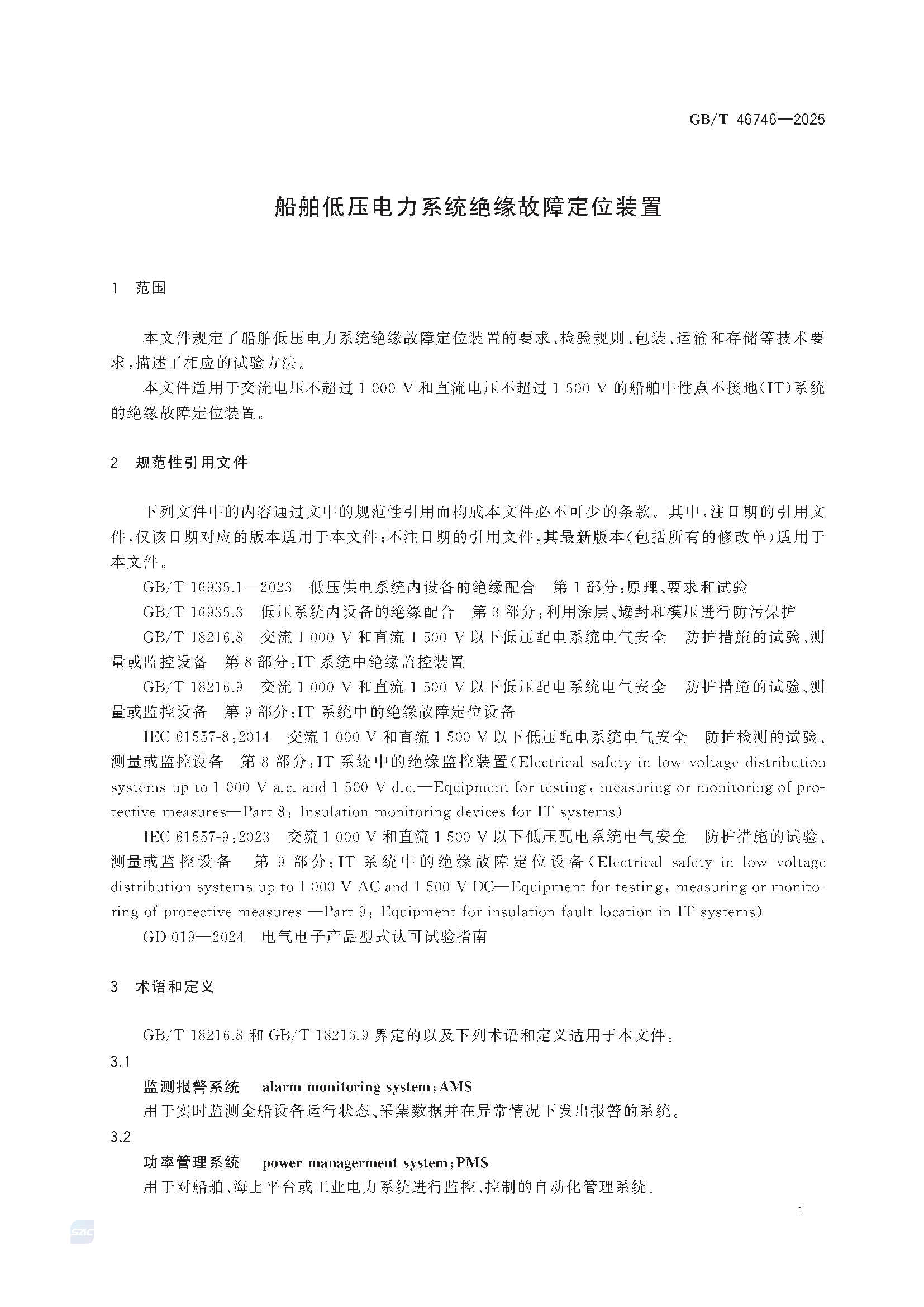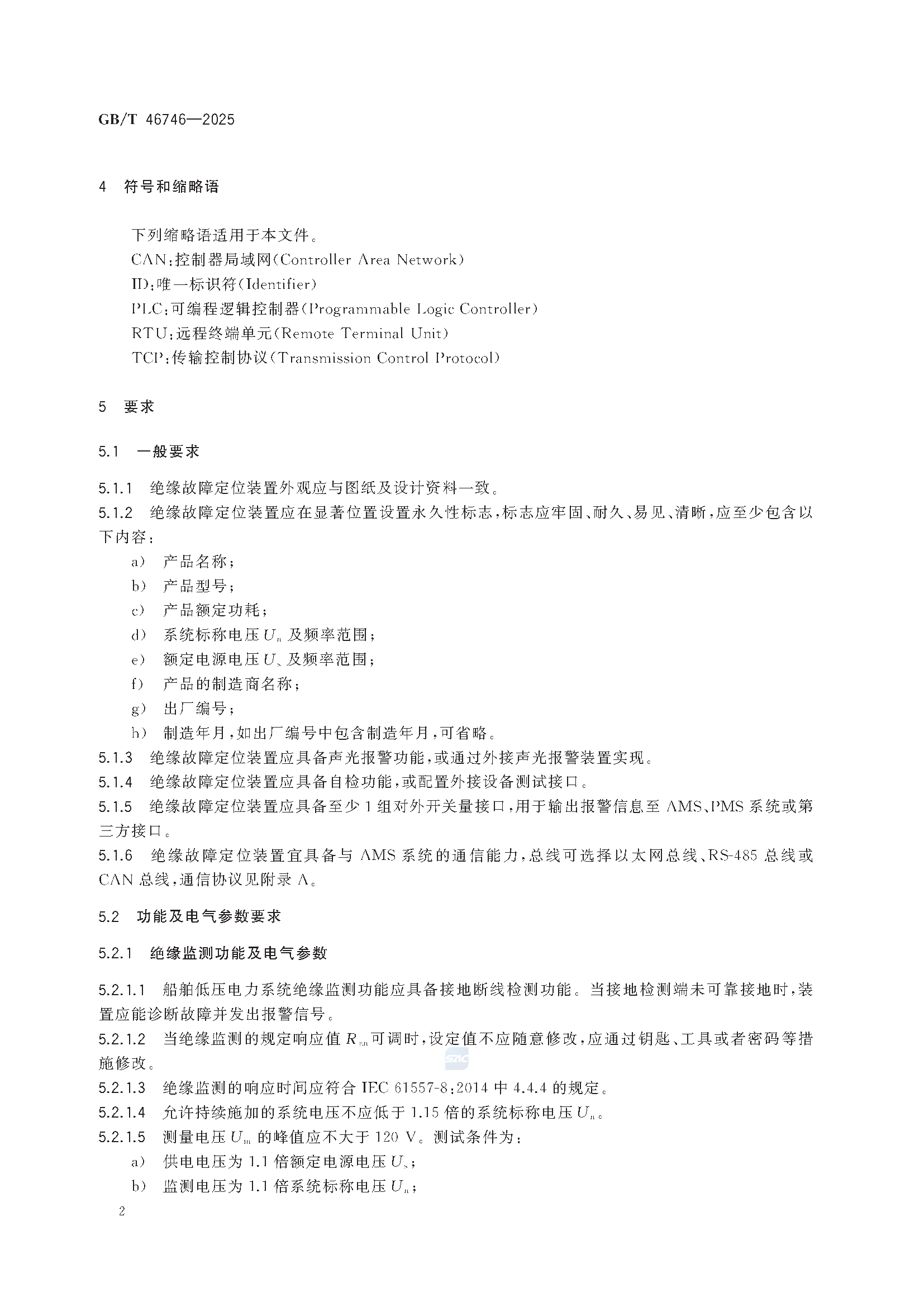 GB/T 46746-2025 船舶低压电力系统绝缘故障定位装置
