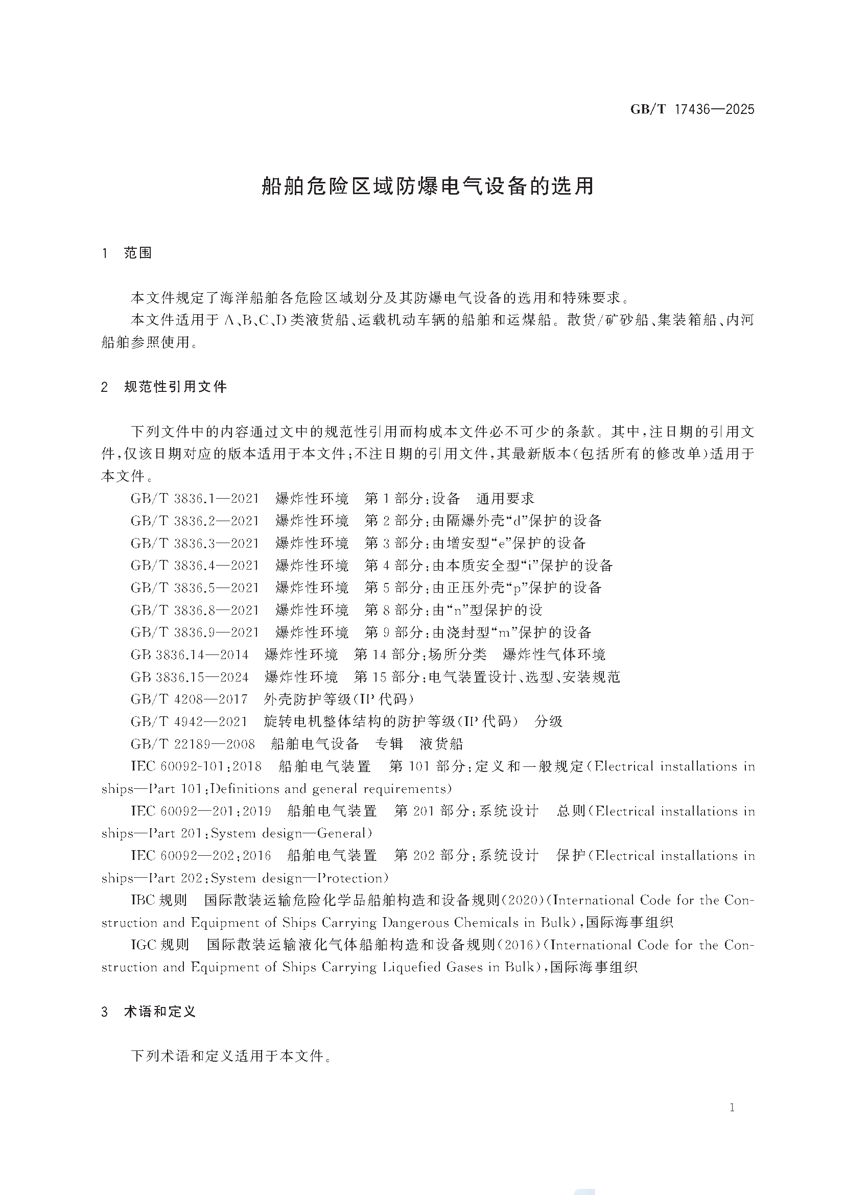 GB/T 17436-2025 船舶危险区域防爆电气设备的选用