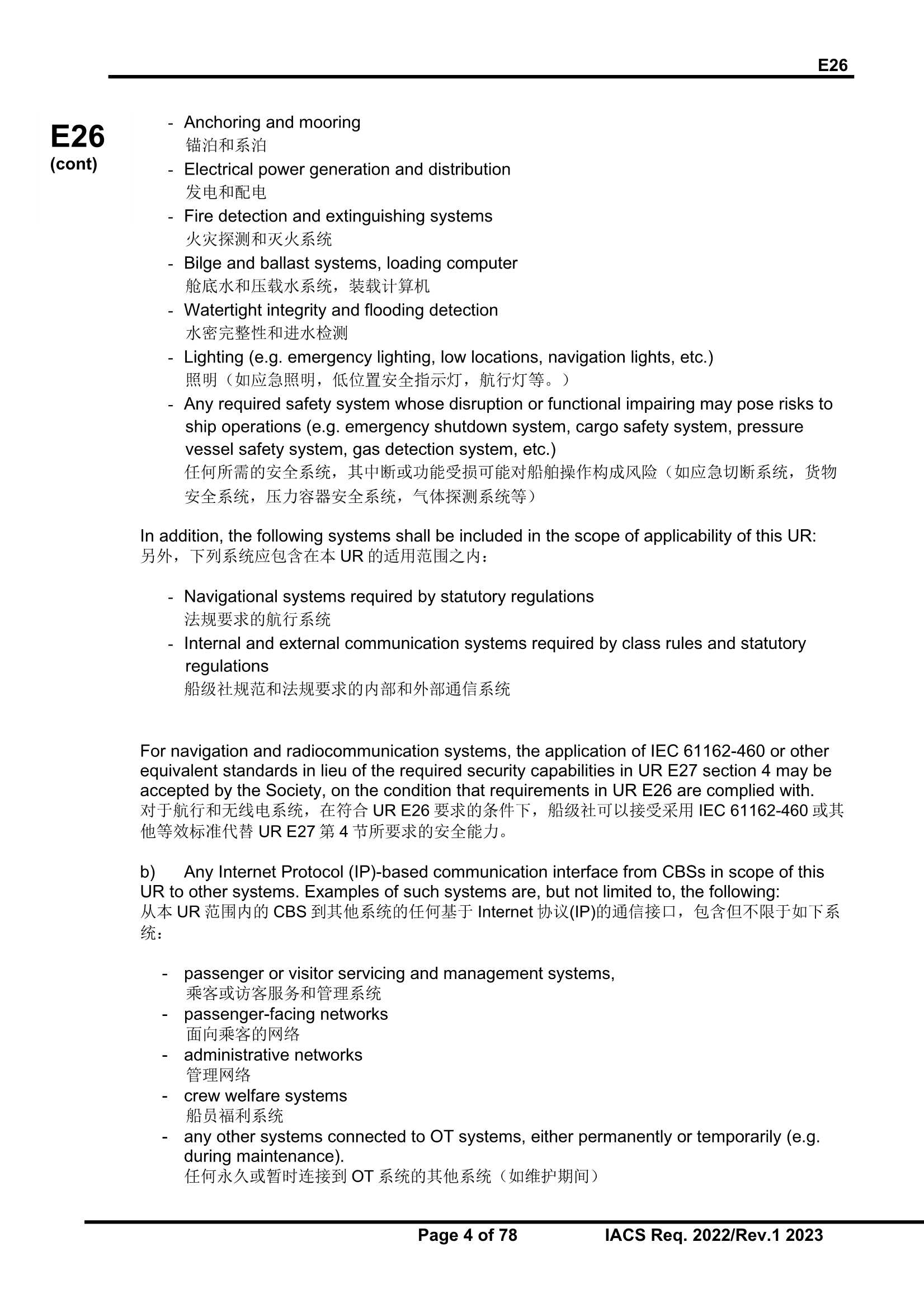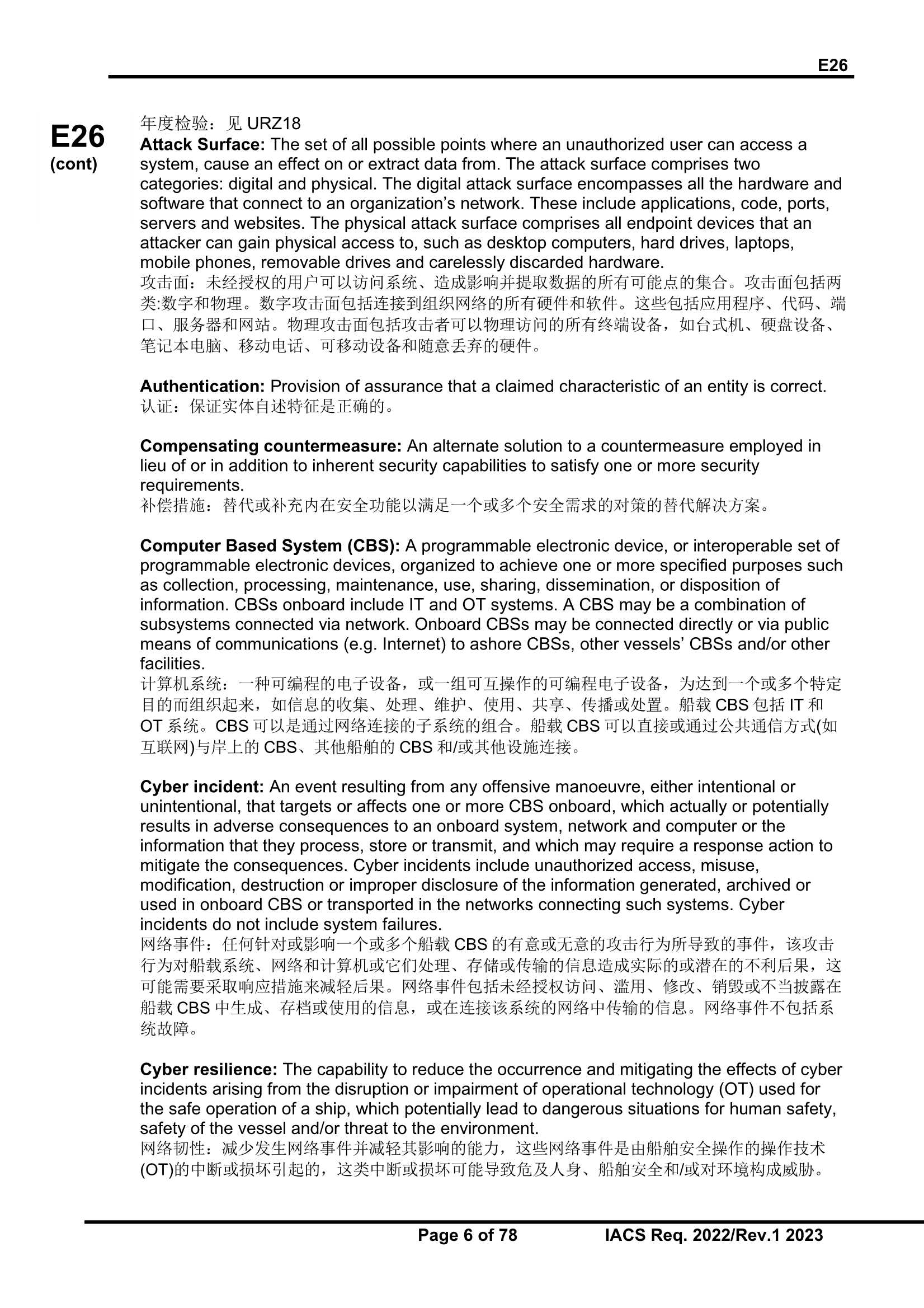 UR E26(Rev.1) Cyber Resilience of Ships 船舶网络可靠性