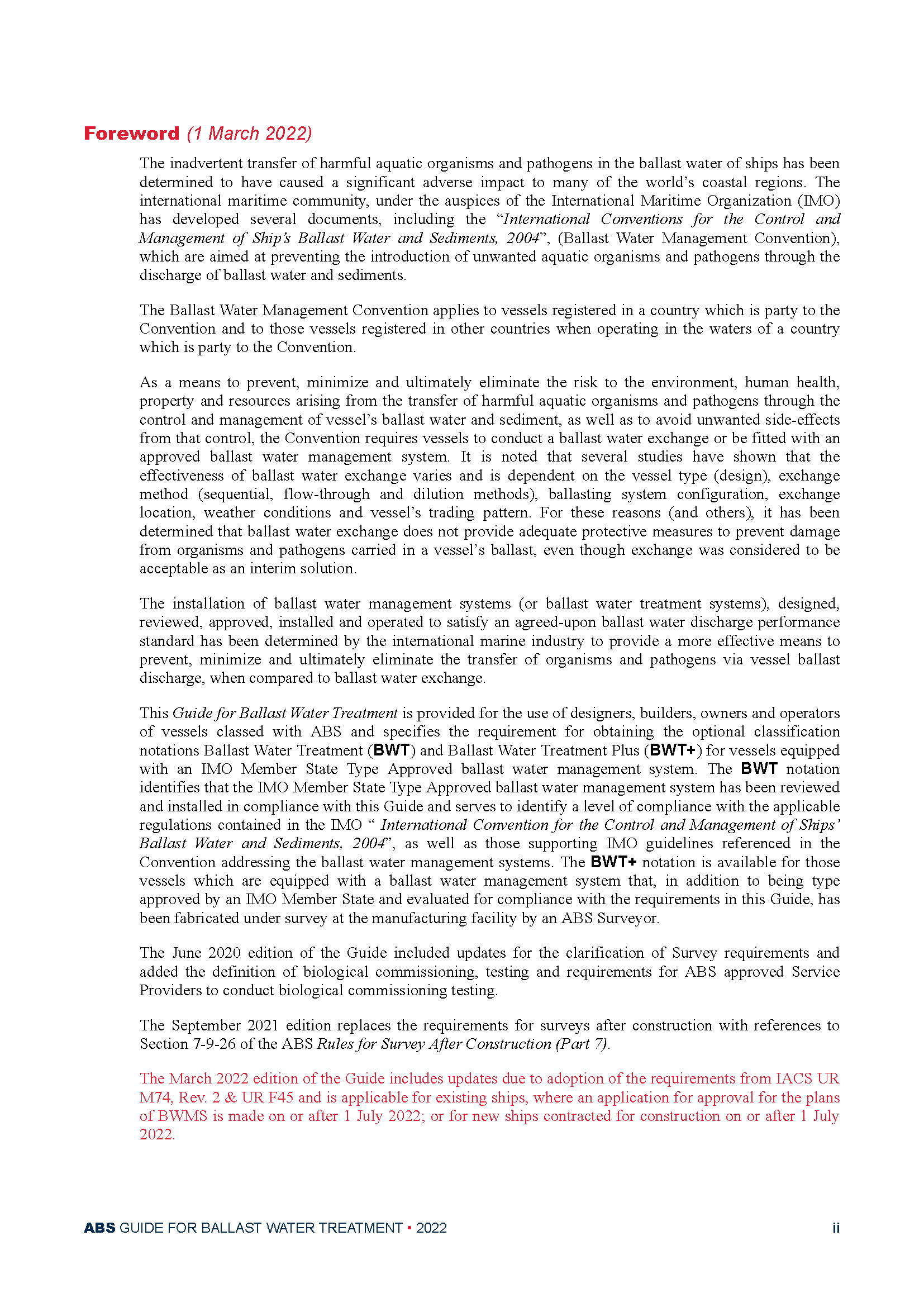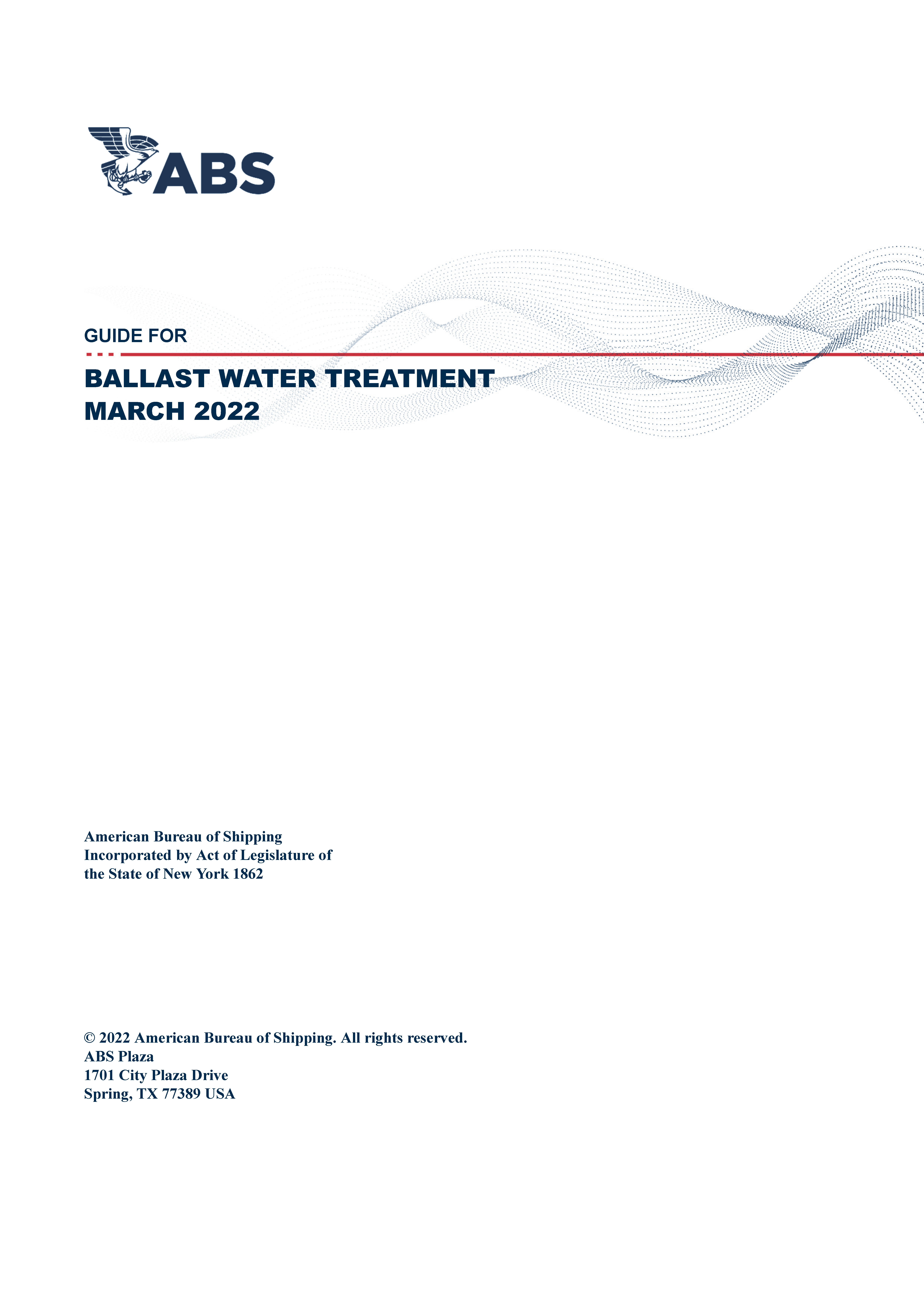 Guide for Ballast Water Treatment (03-2022) 压载水处理指南