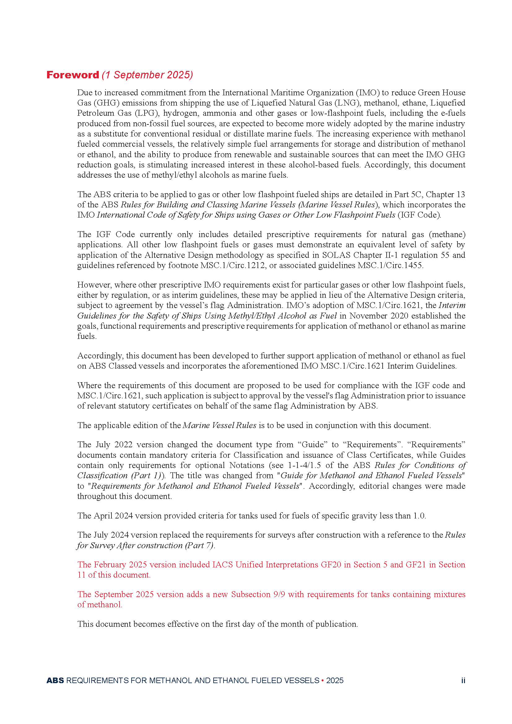 Requirements for Methanol and Ethanol Fueled Vessels (09-2025)