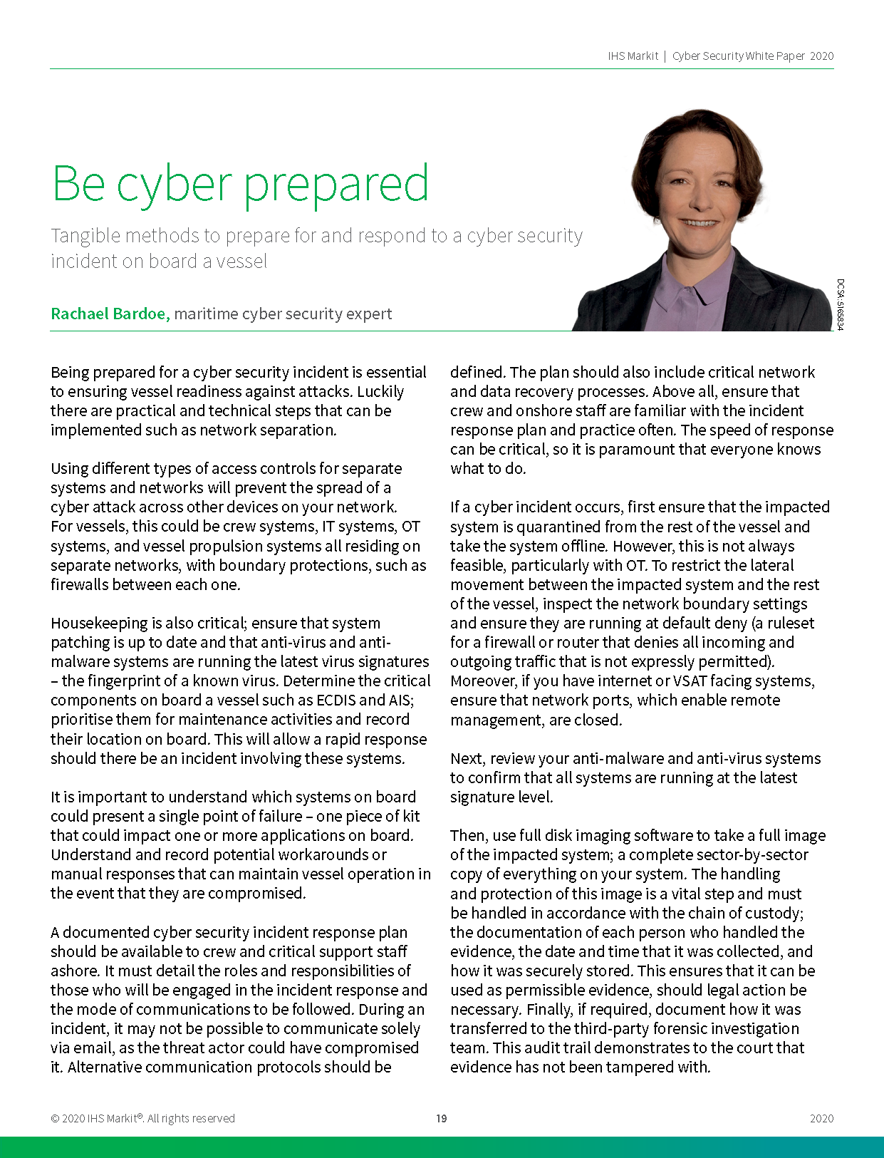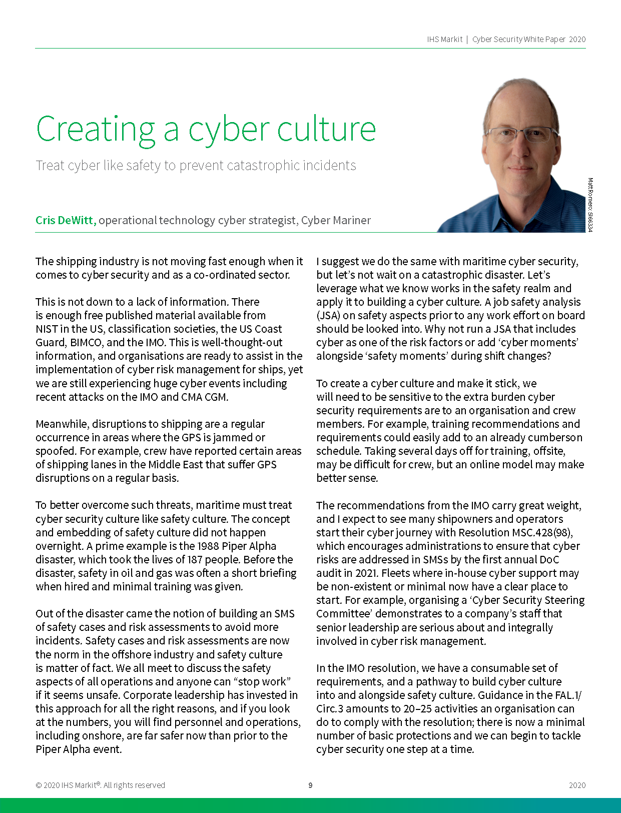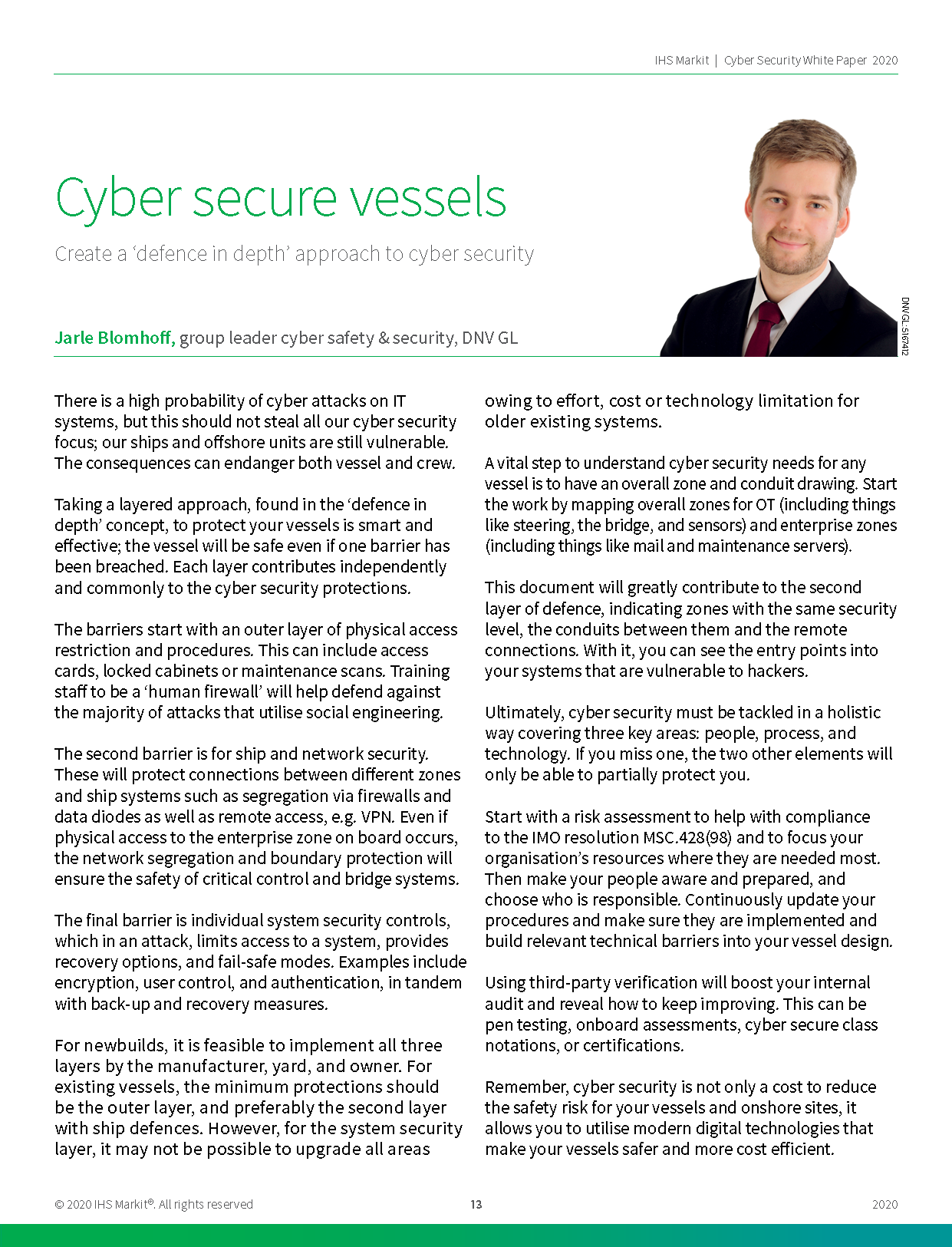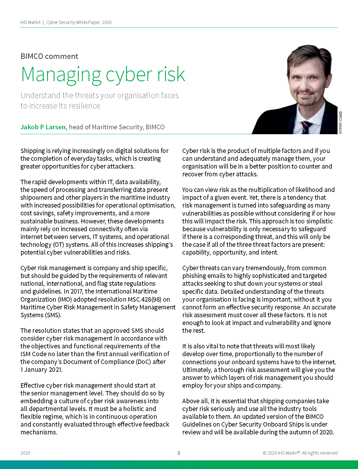Safety at Sea and BIMCO Cyber Security White Paper (2020)