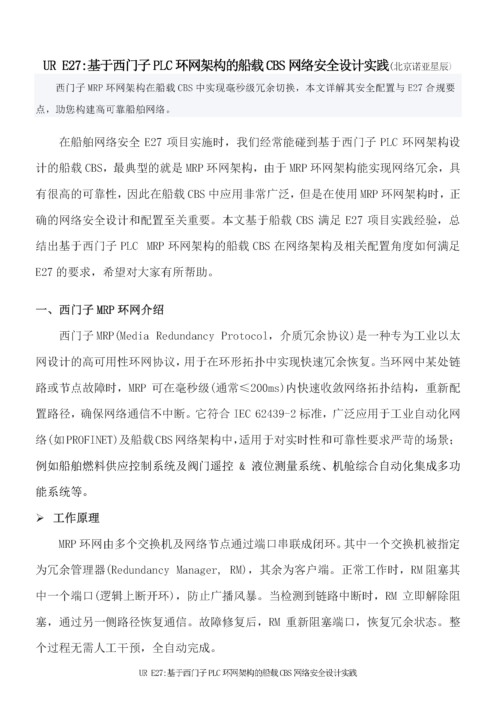UR E27:基于西门子PLC环网架构的船载CBS网络安全设计实践(北京诺亚星辰)