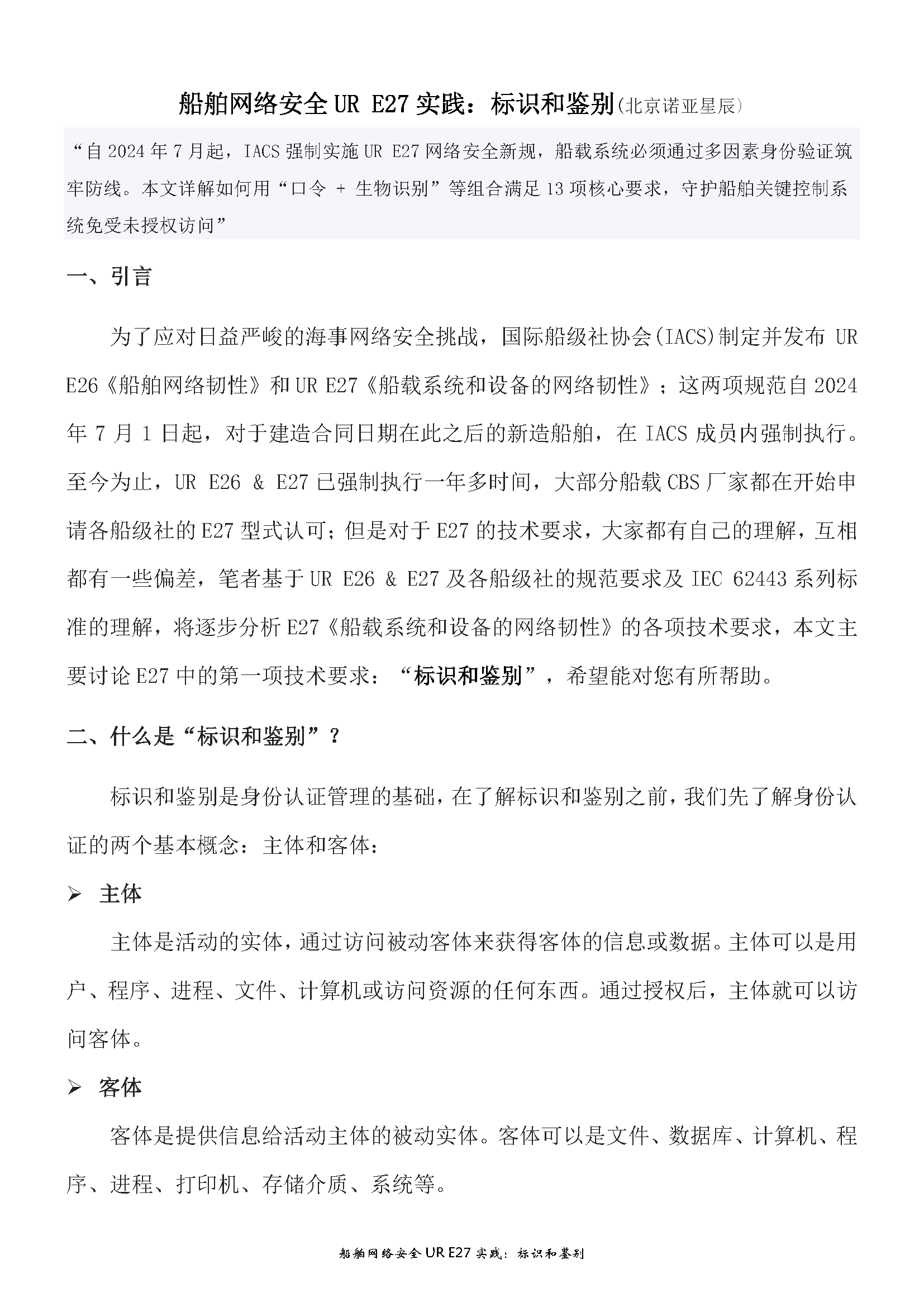 船舶网络安全UR E27实践:标识和鉴别