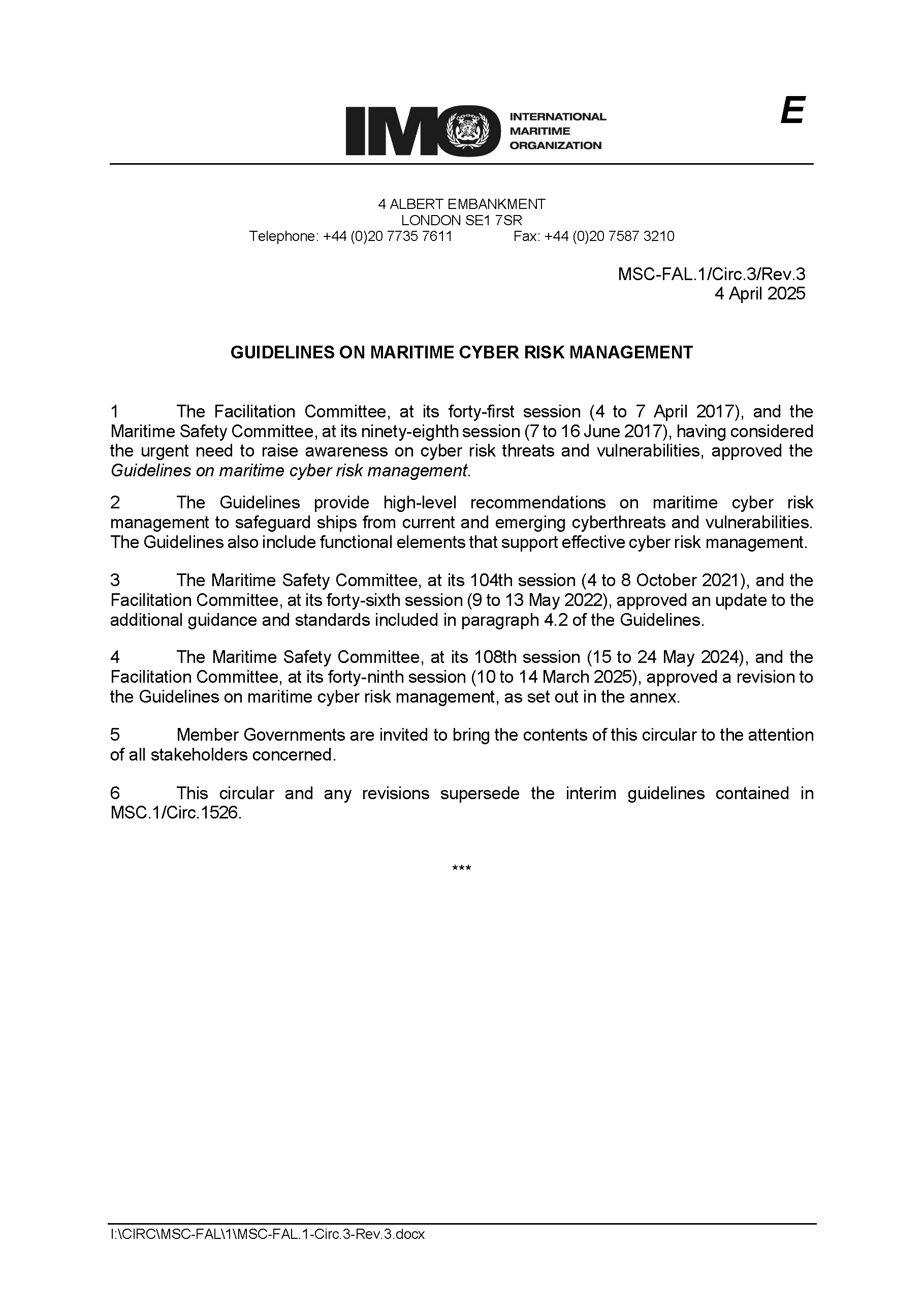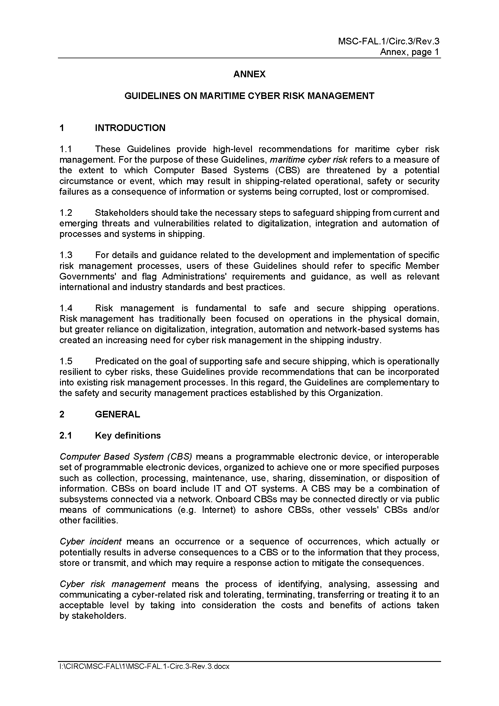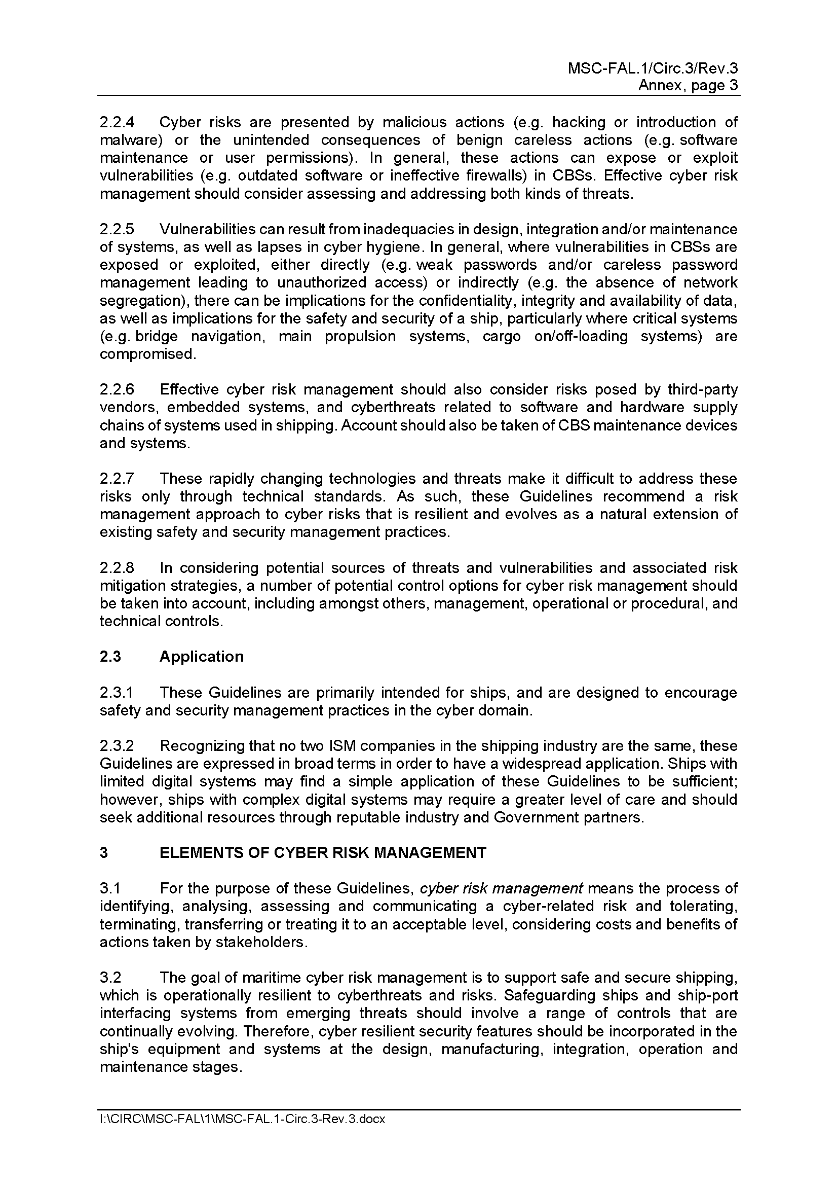 MSC-FAL.1/Circ.3/Rev.3 Guidelines on Maritime Cyber Risk Management