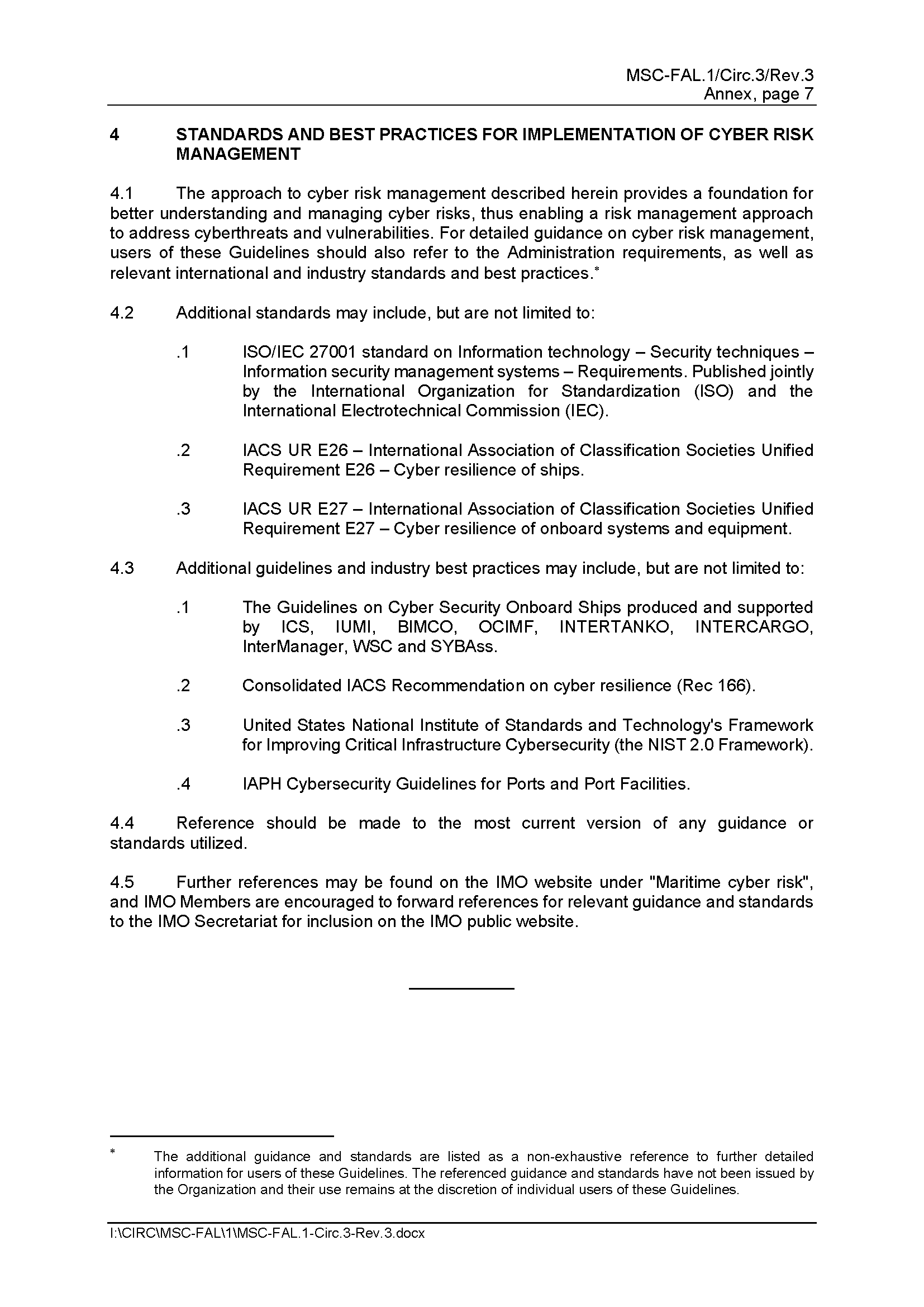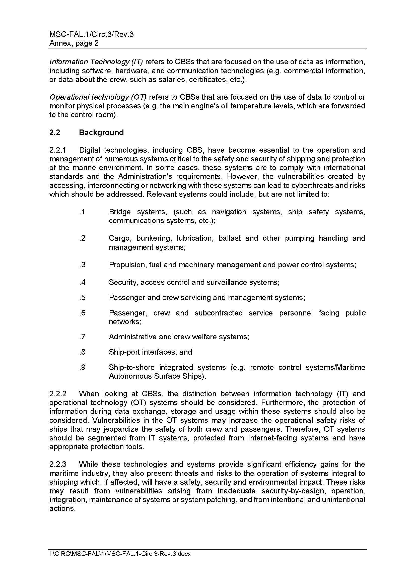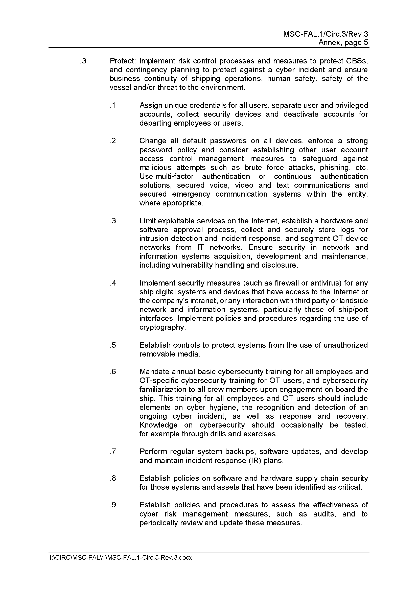MSC-FAL.1/Circ.3/Rev.3 Guidelines on Maritime Cyber Risk Management