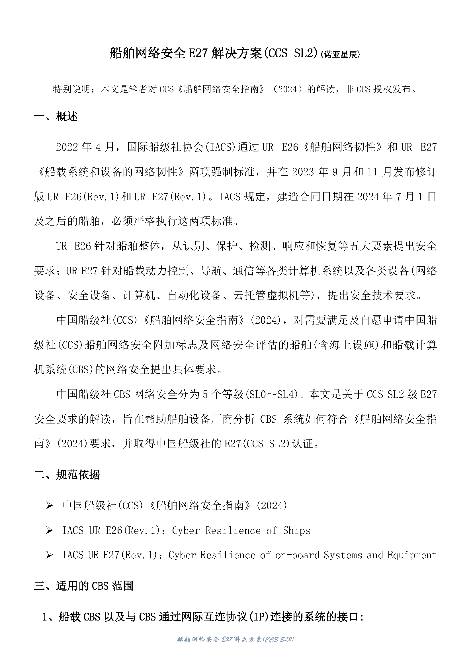 船舶网络安全E27解决方案(CCS SL