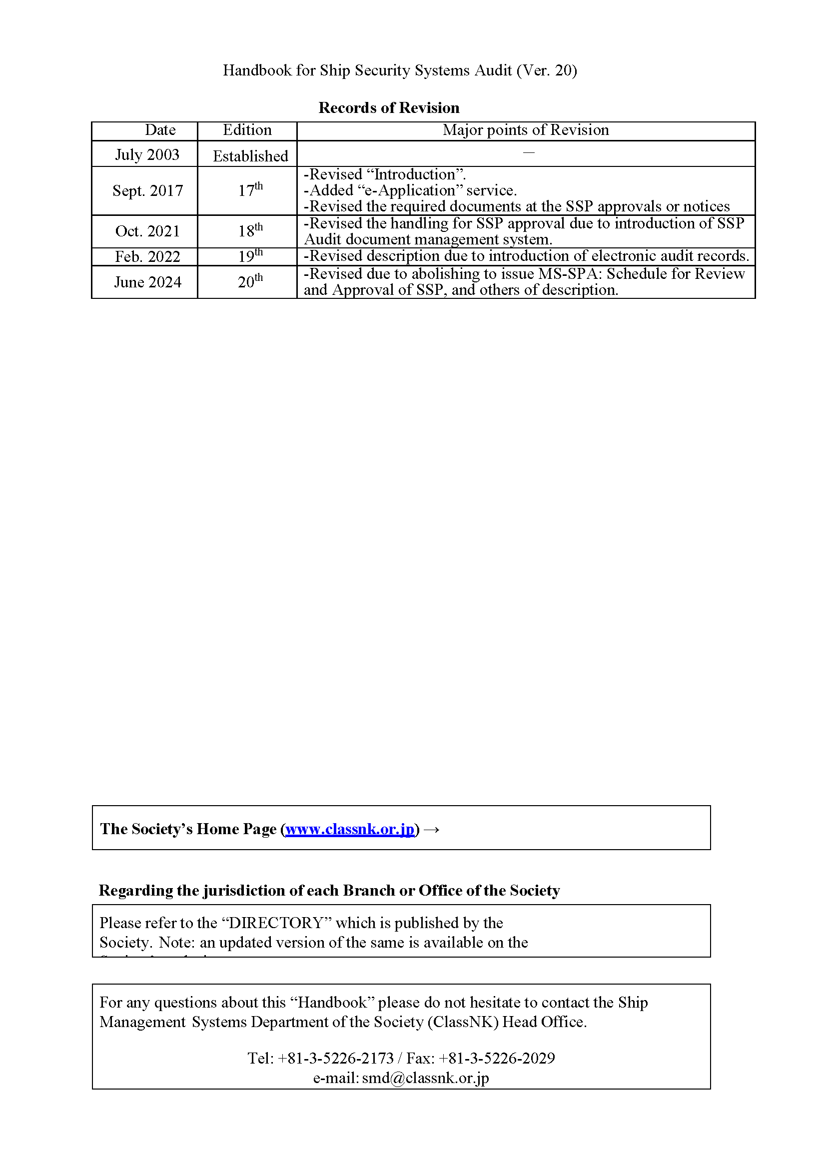 Handbook for Ship Security System Audit (Ver.20) (NK, 2024)