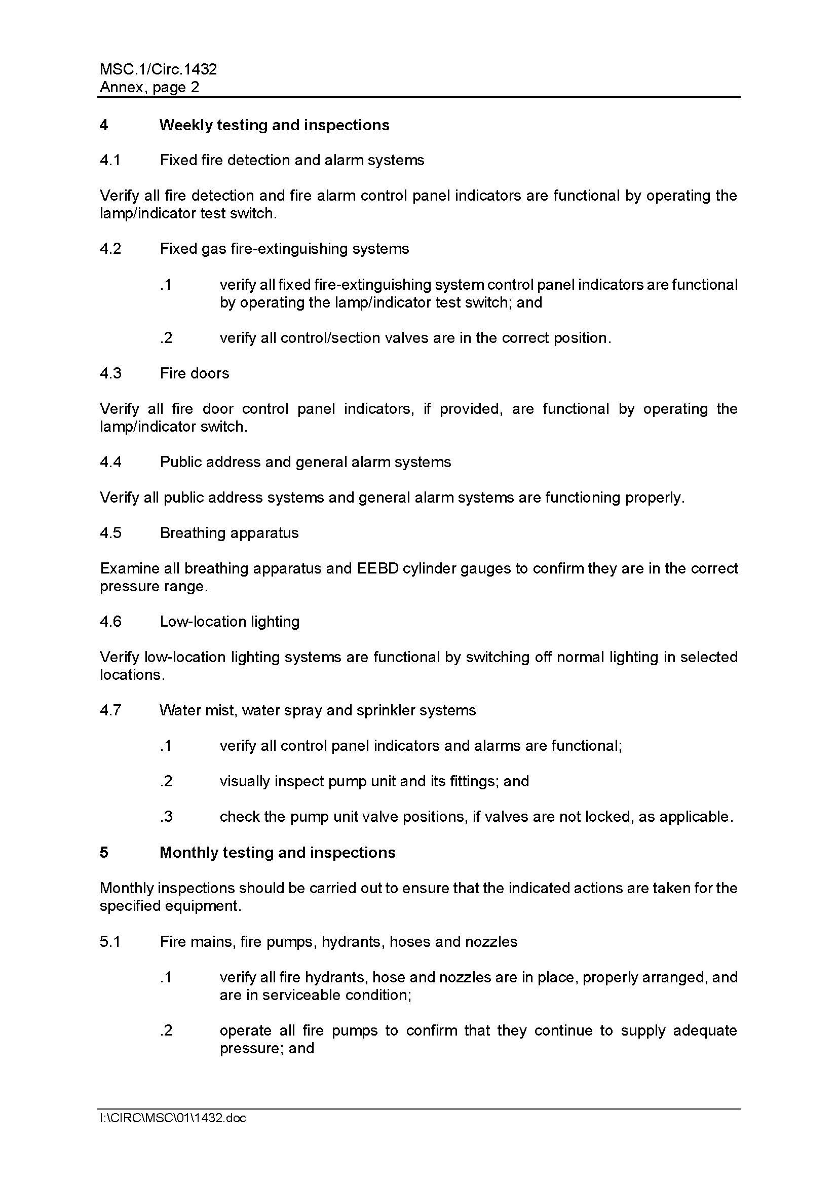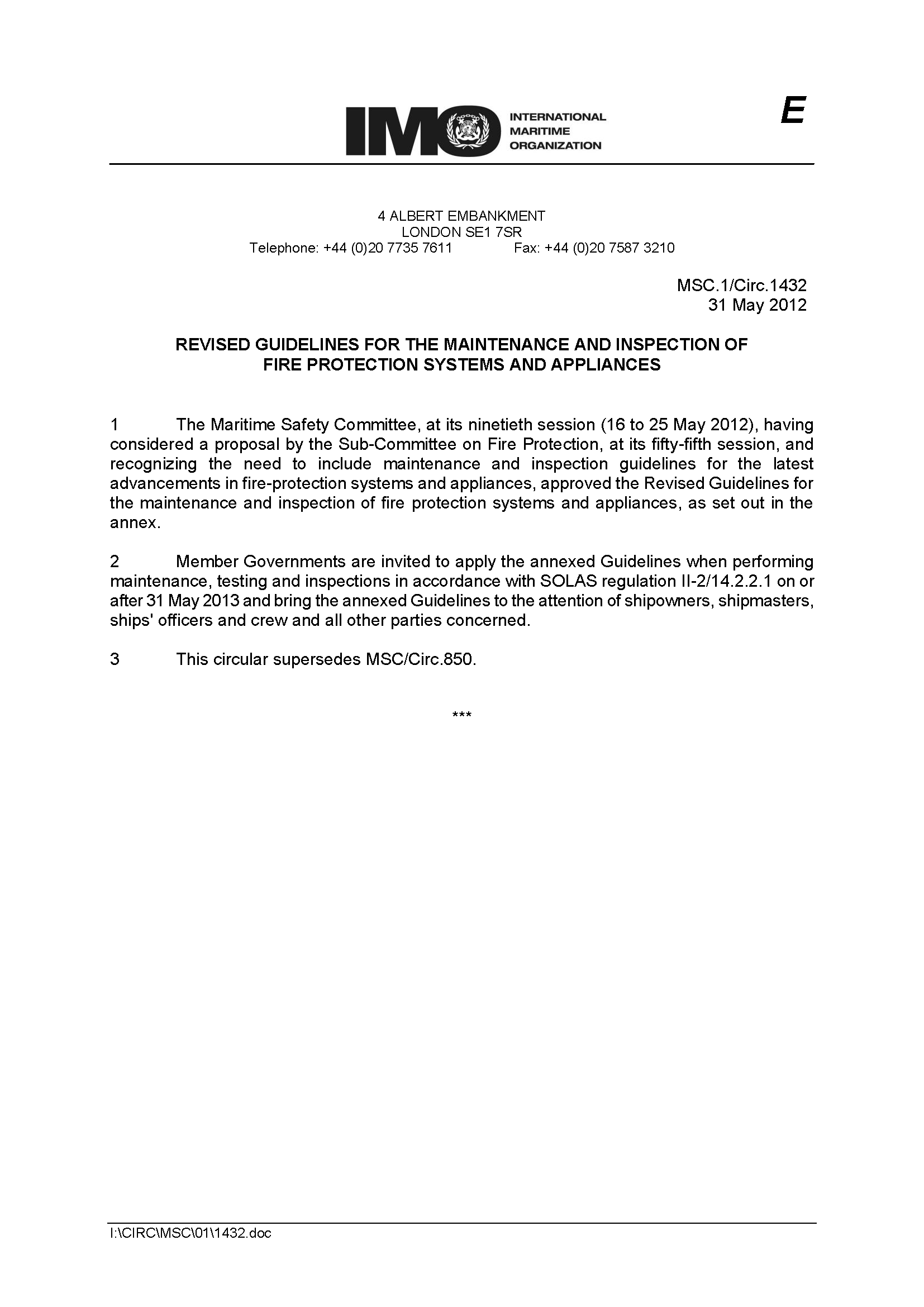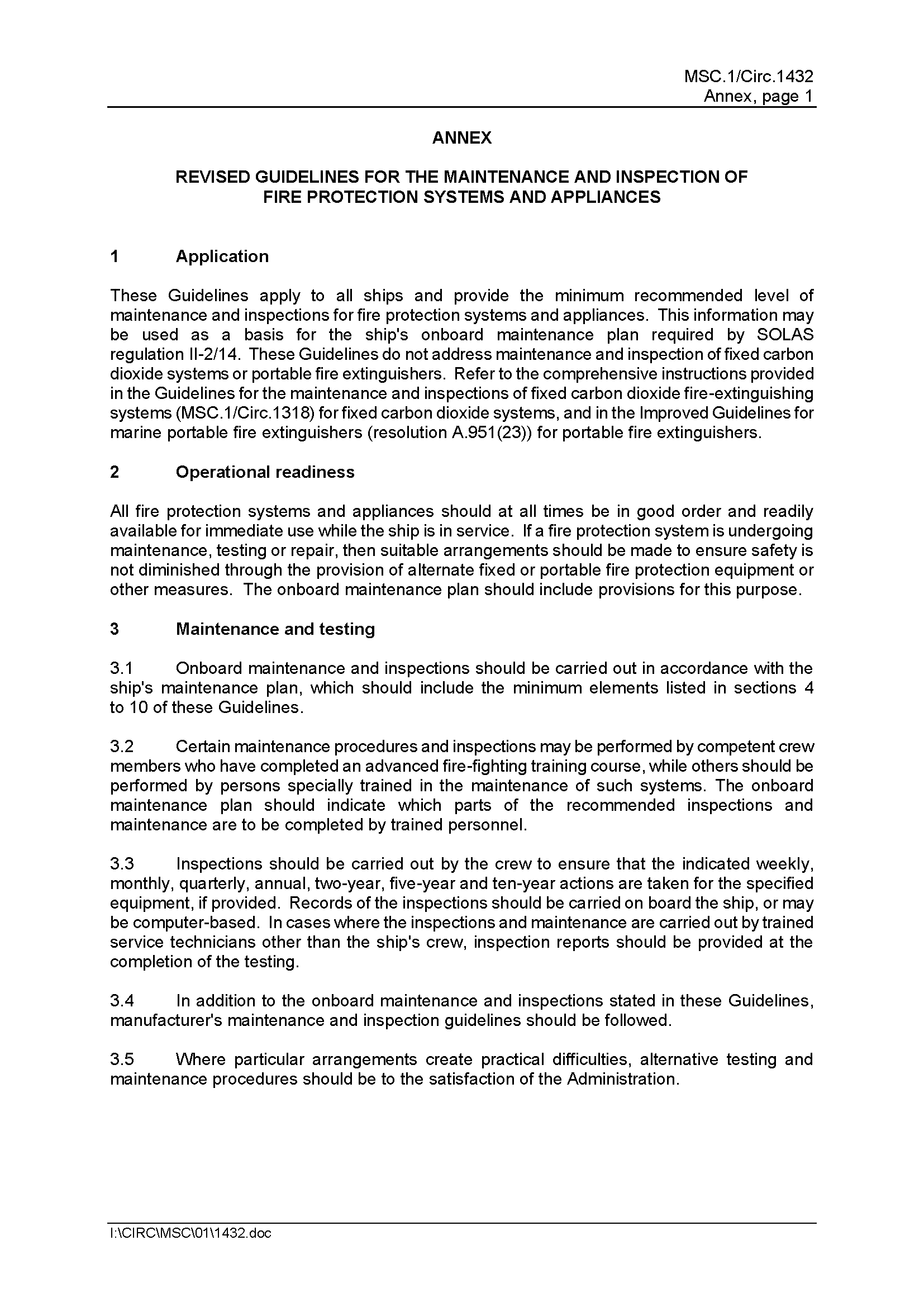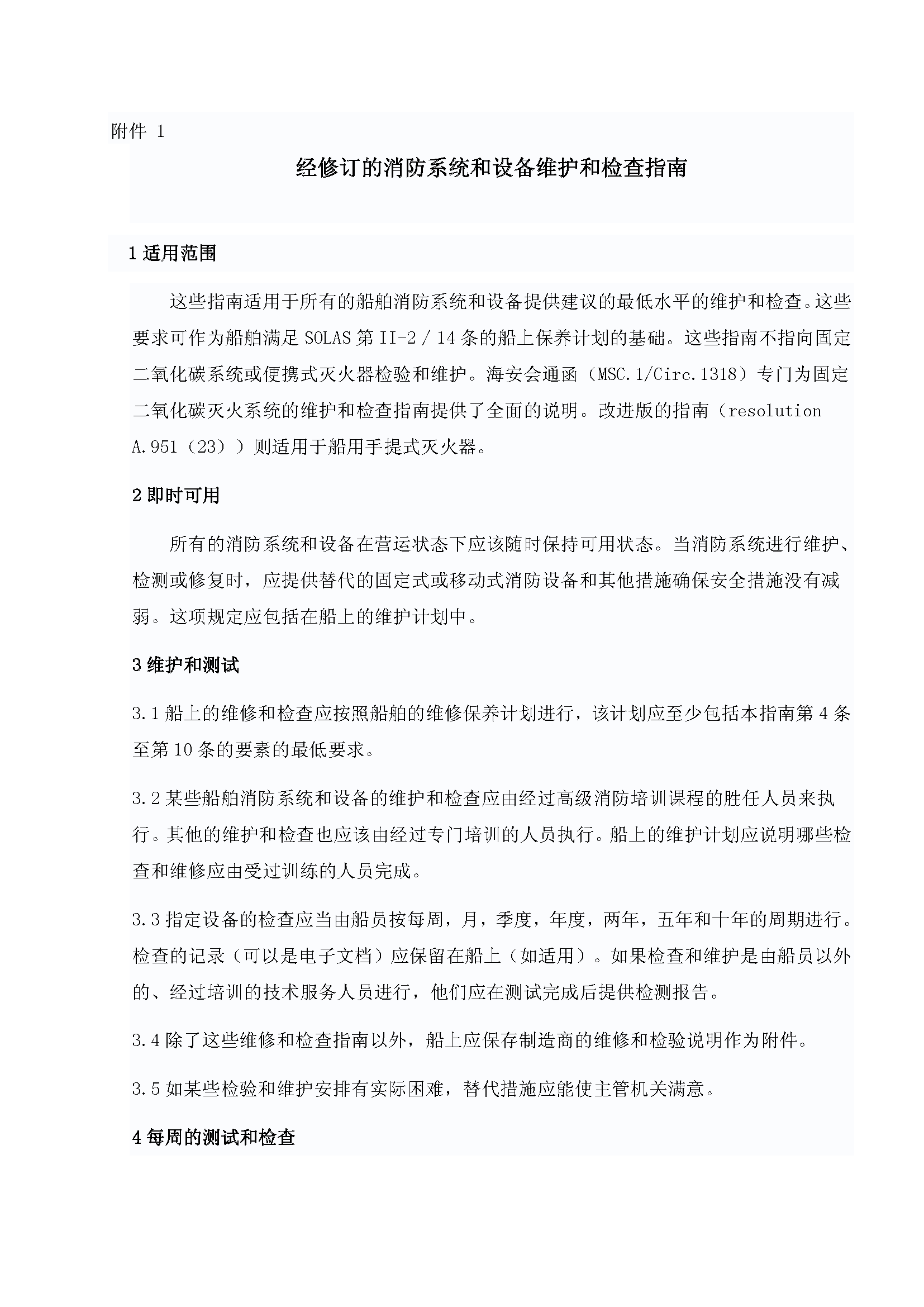 MSC.1/Circ.1432 经修订的消防系统和设备维护和检查指南 (中/英文) Revised Guidelines for the Maintenance and Inspection of Fire Protection Systems and Appliances