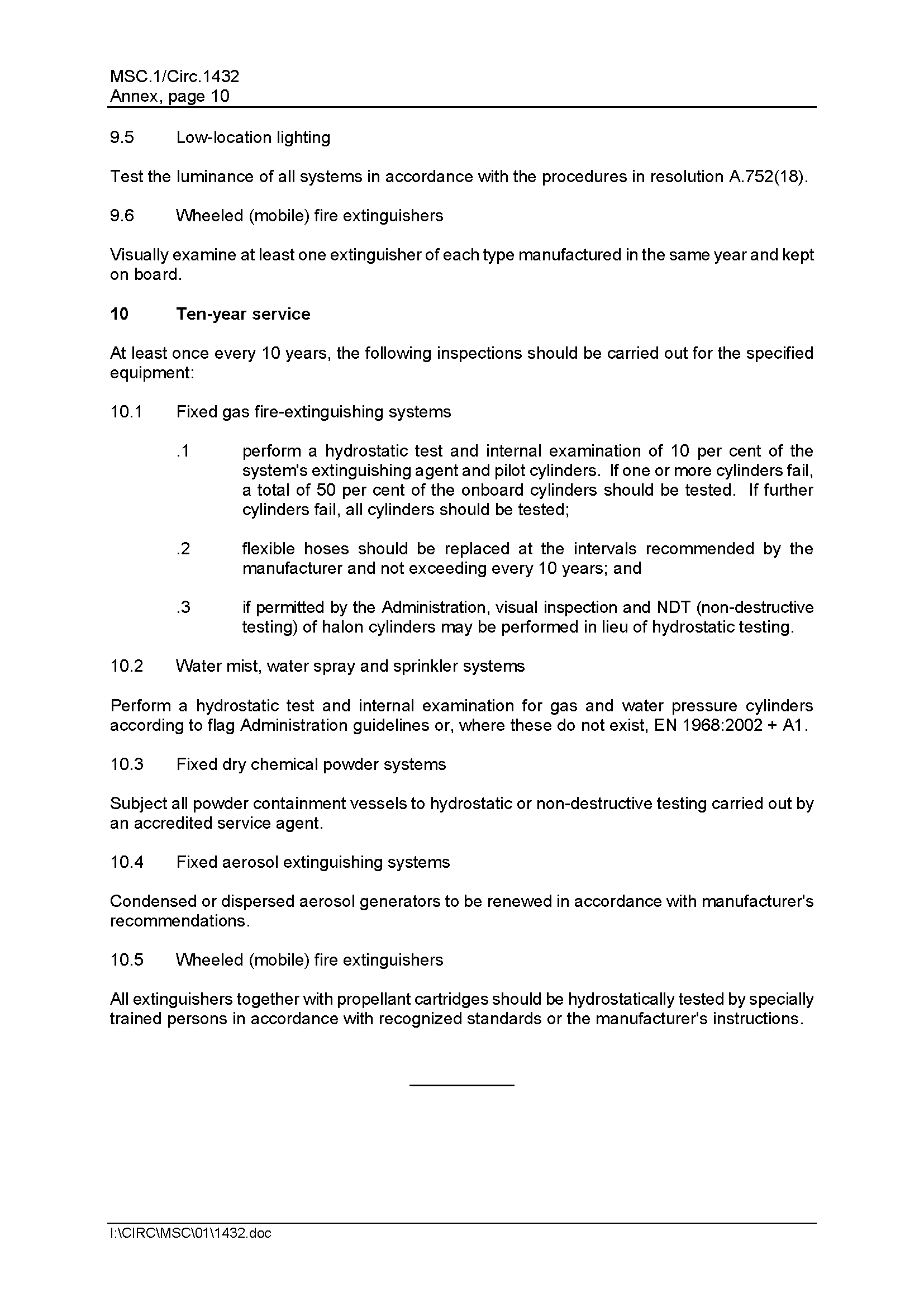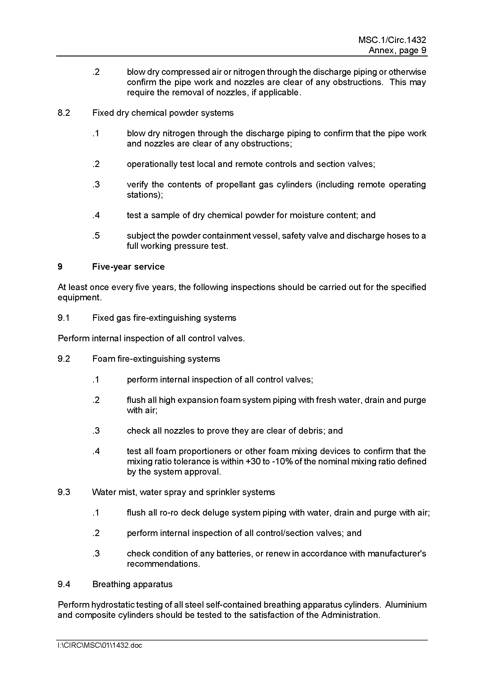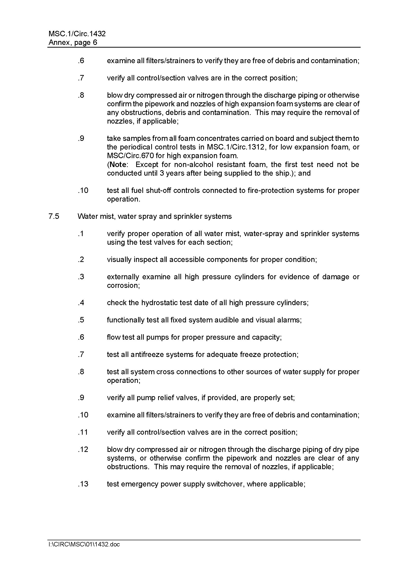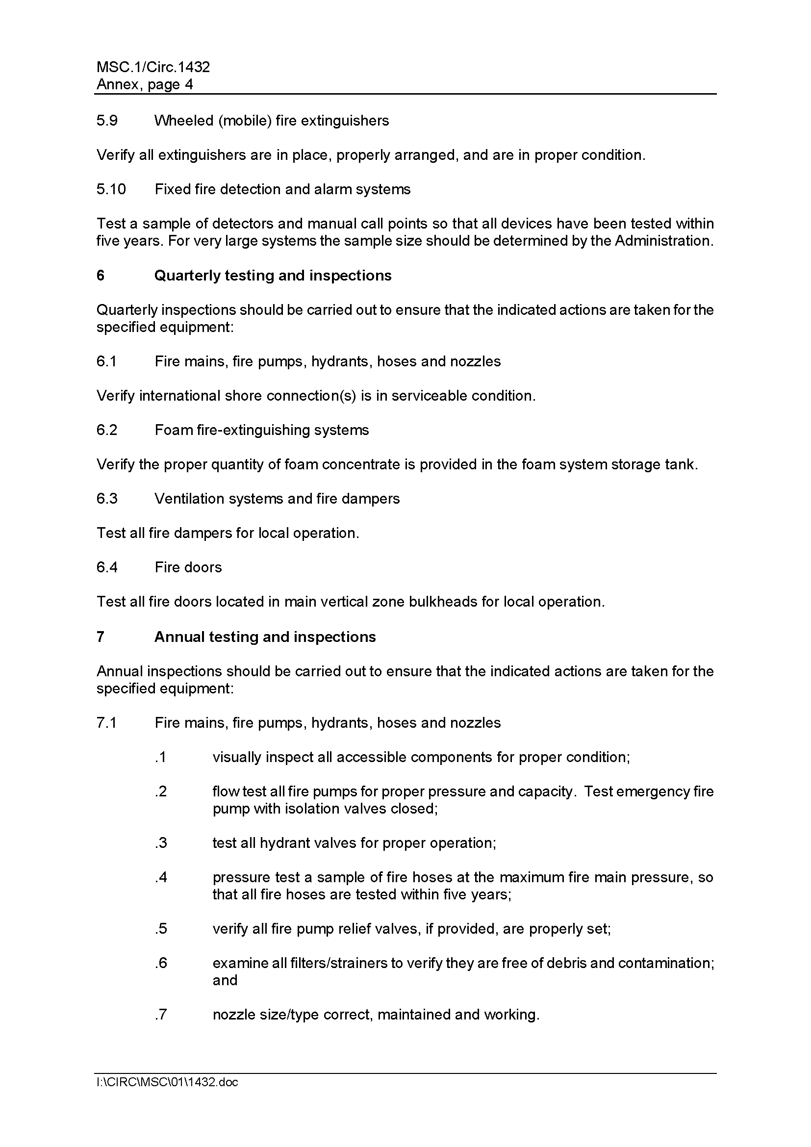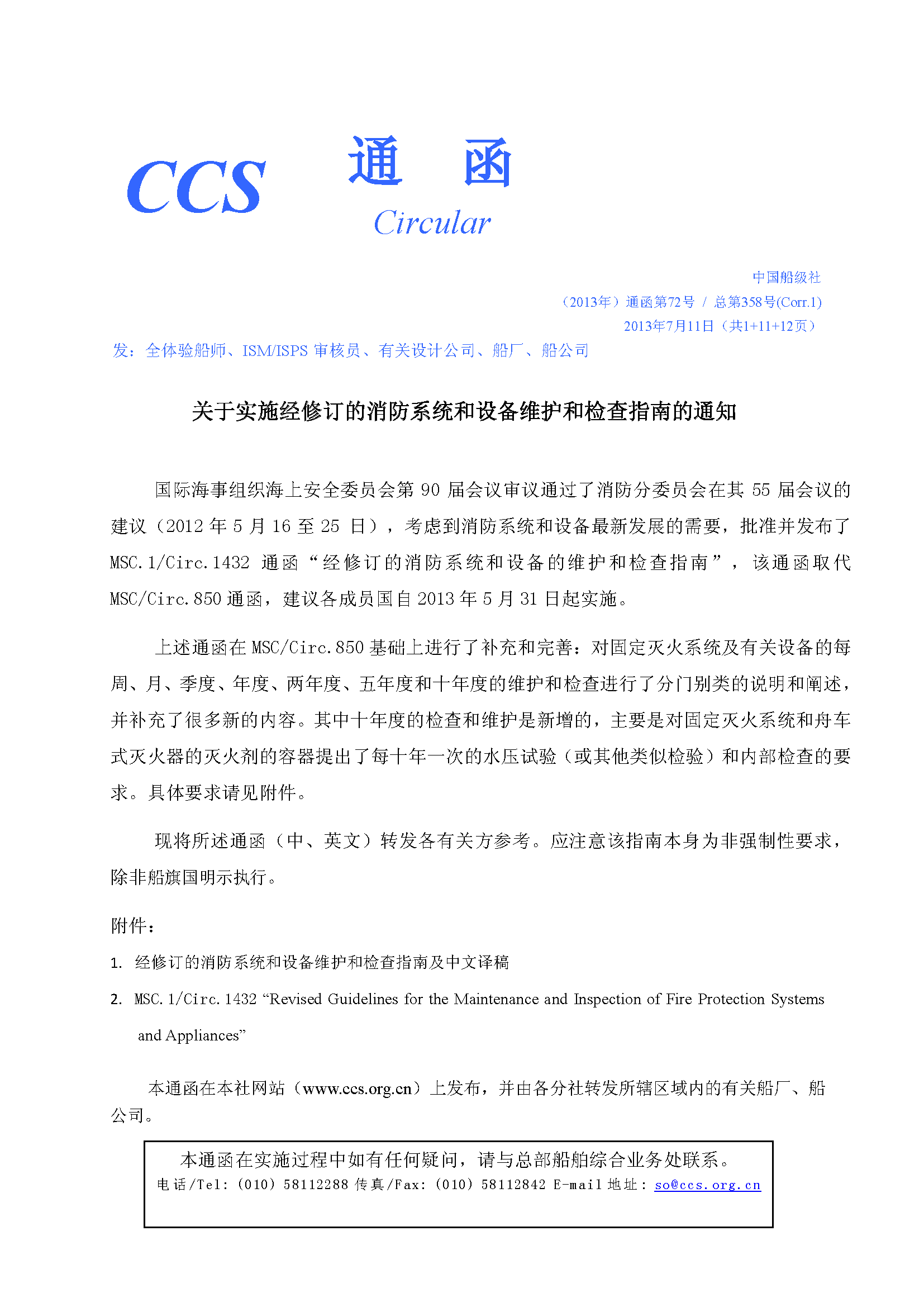 MSC.1/Circ.1432 经修订的消防系统和设备维护和检查指南 (中/英文) Revised Guidelines for the Maintenance and Inspection of Fire Protection Systems and Appliances