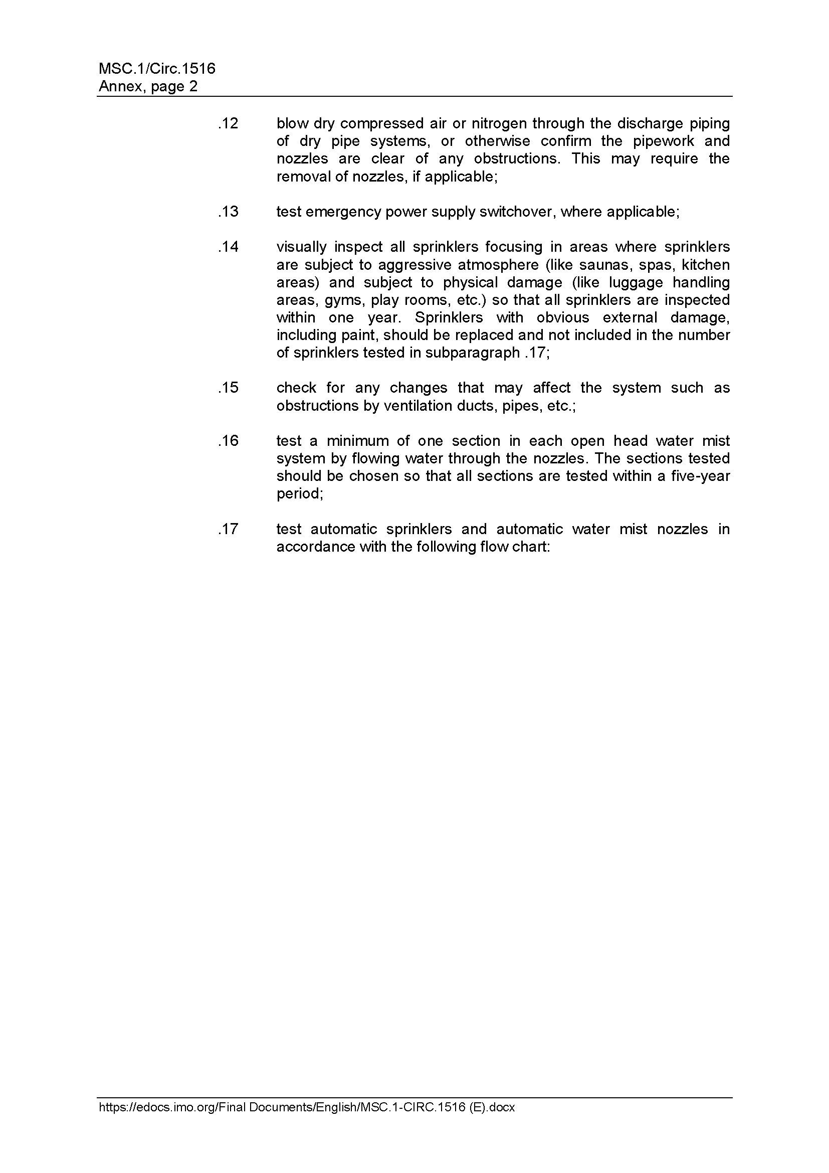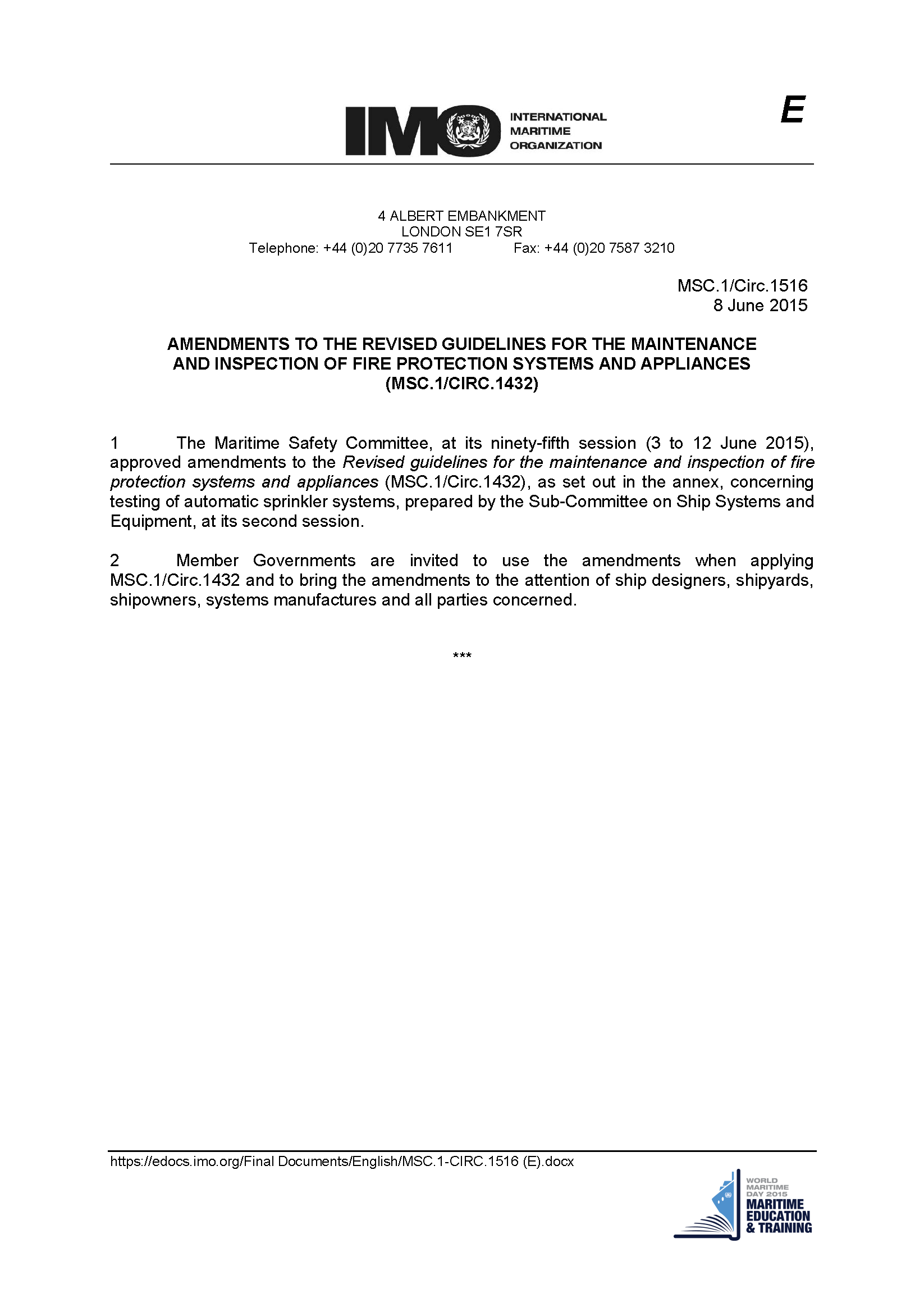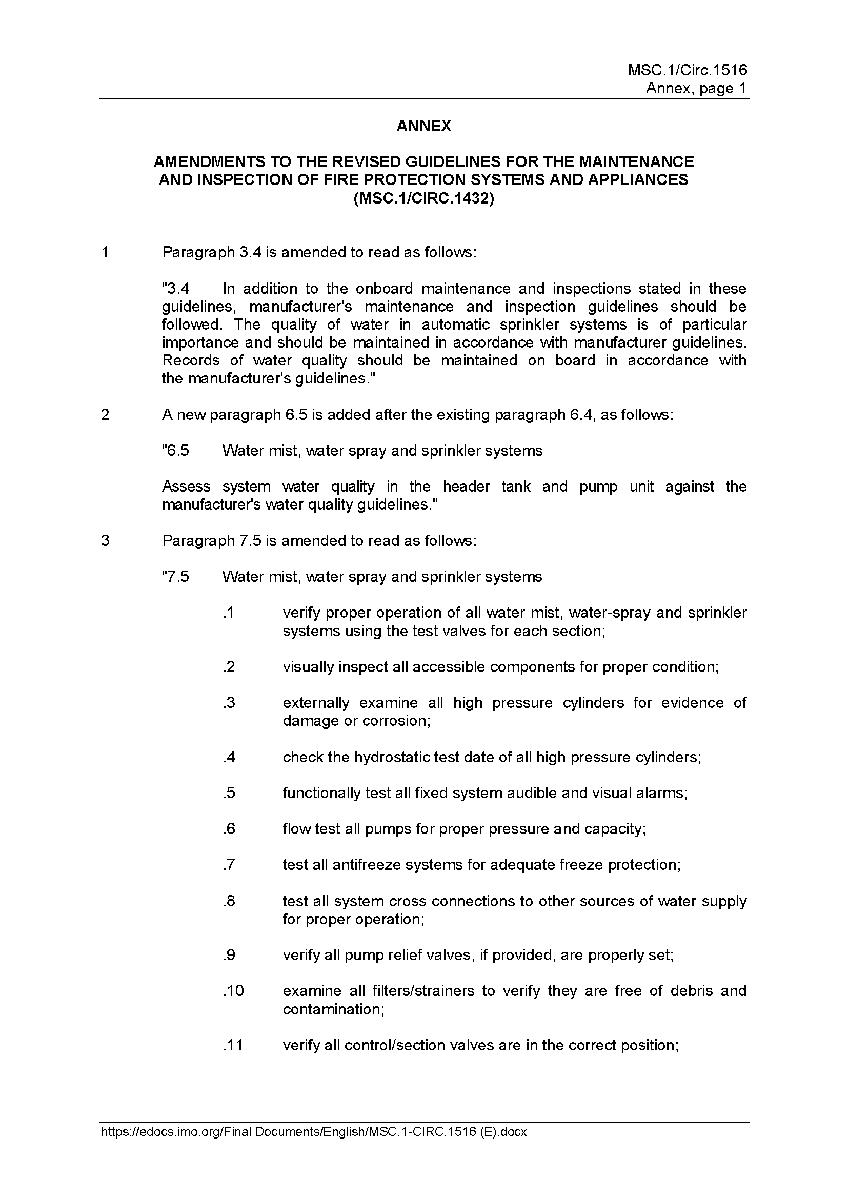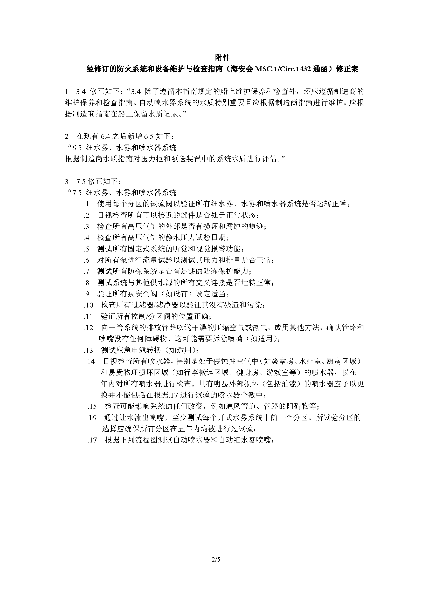 MSC.1/Circ.1516 Amendments to the Revised Guidelines for the Maintenance and Inspection of Fire Protection and Appliances (MSC.1/Circ.1432)(英/中文) 消防系统和设备维护和检查修订指南的修正案