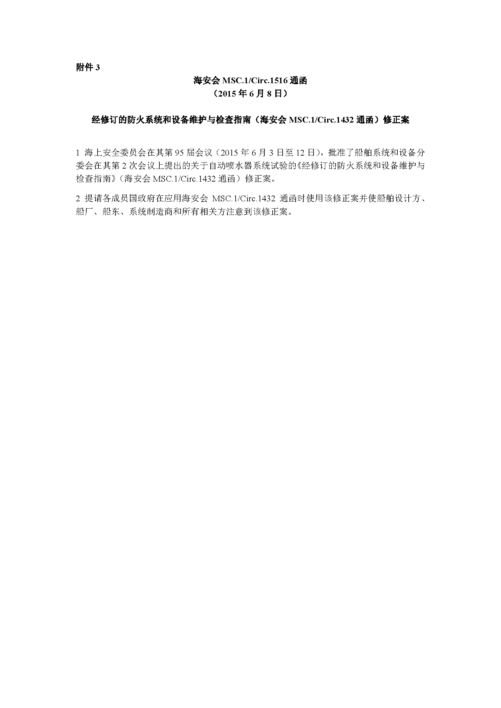 MSC.1/Circ.1516 Amendments to the Revised Guidelines for the Maintenance and Inspection of Fire Protection and Appliances (MSC.1/Circ.1432) (英/中文)