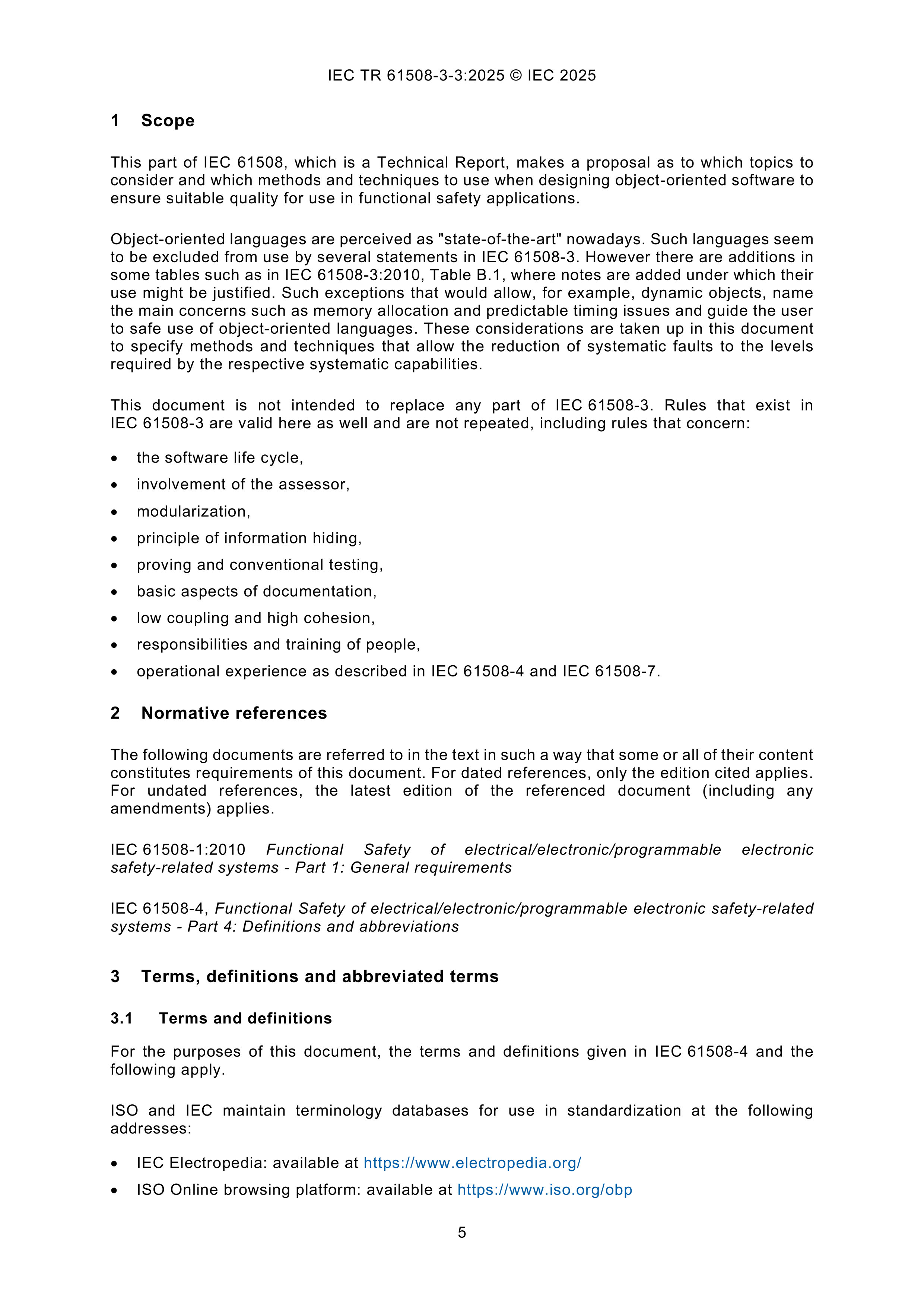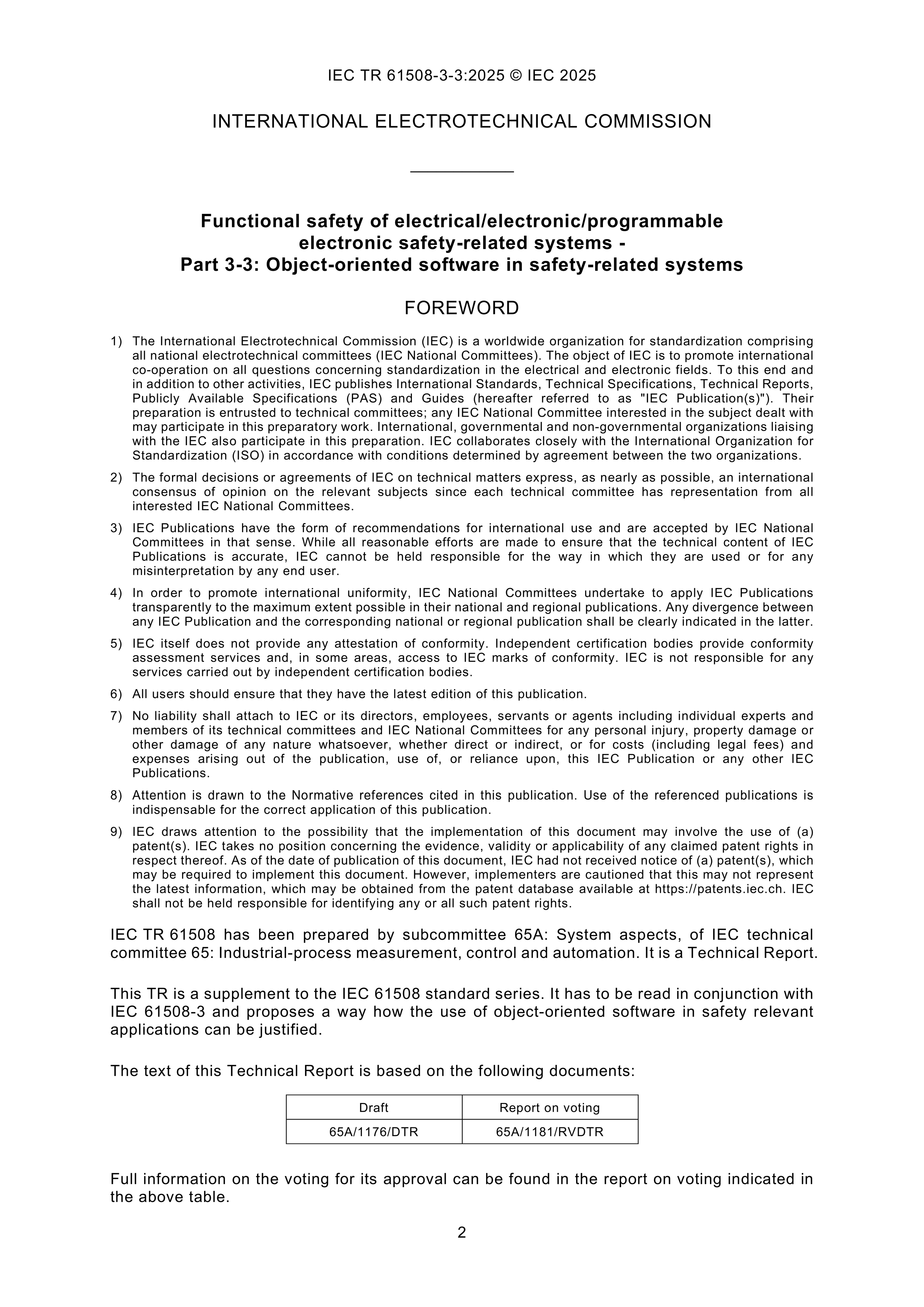IEC TR 61508-3-3 (07-2025) Functional Safety of Electrical / Electronic / Programmable Electronic Safety-Related Systems - Part 3-3: -Oriented Software in Safety-Related Systems 电气/电子/可编程电子安全相关系统的功能安全 - 第3-3部分:安全相关系统中的面向对象软件