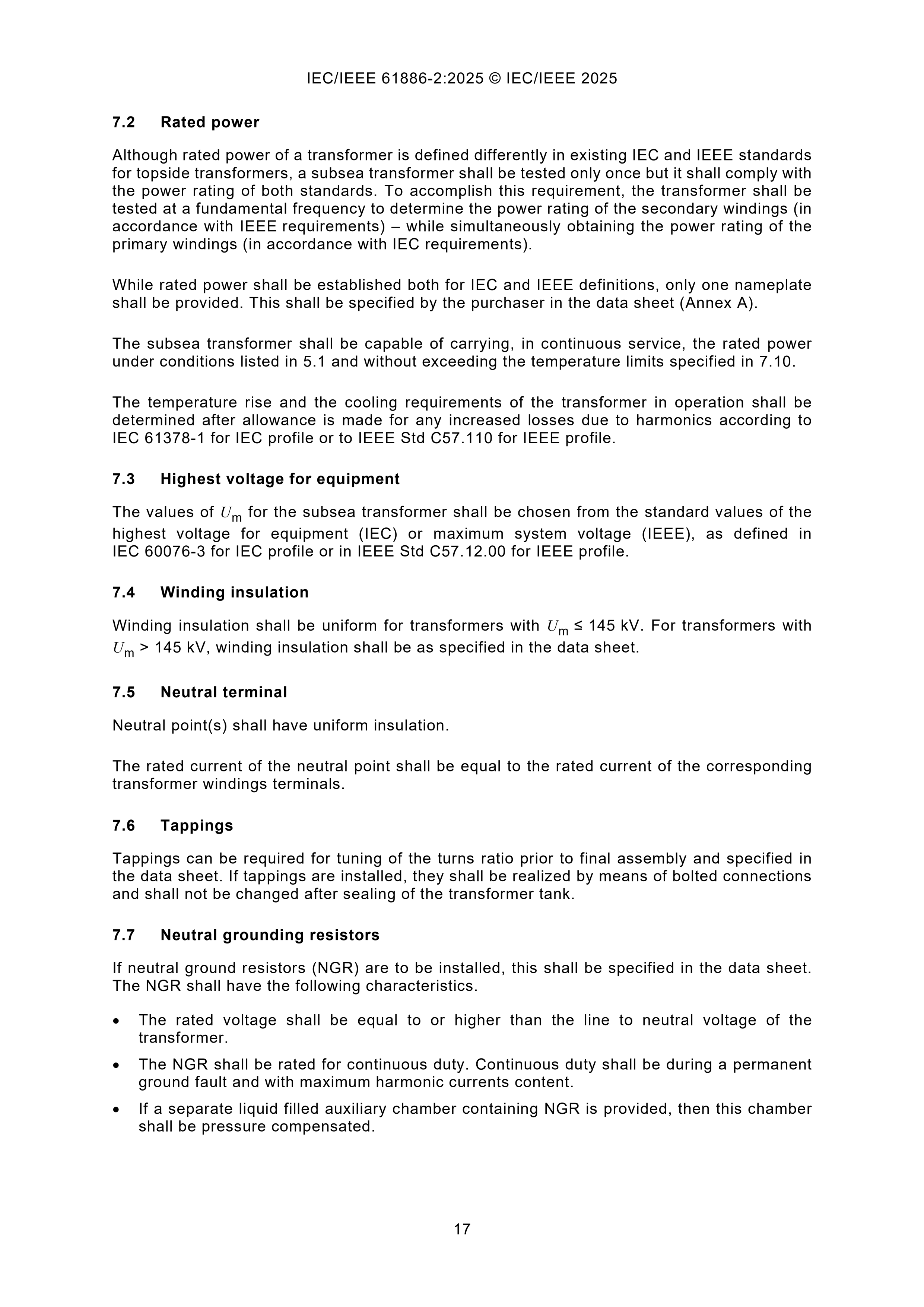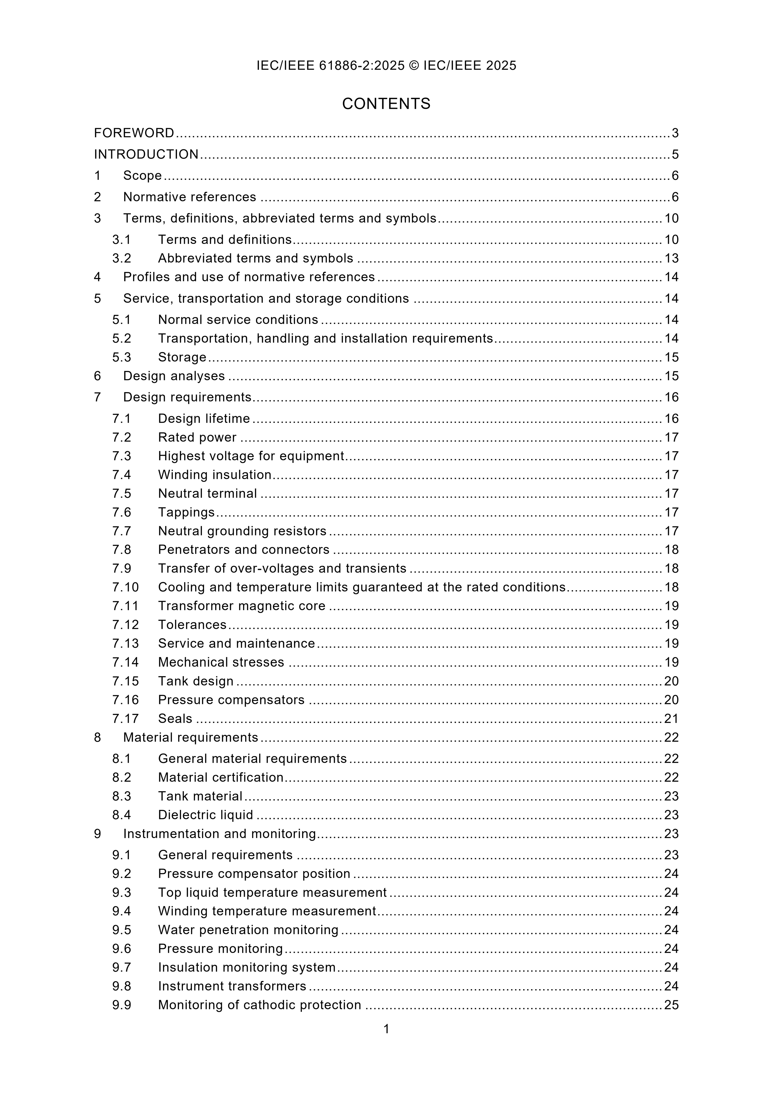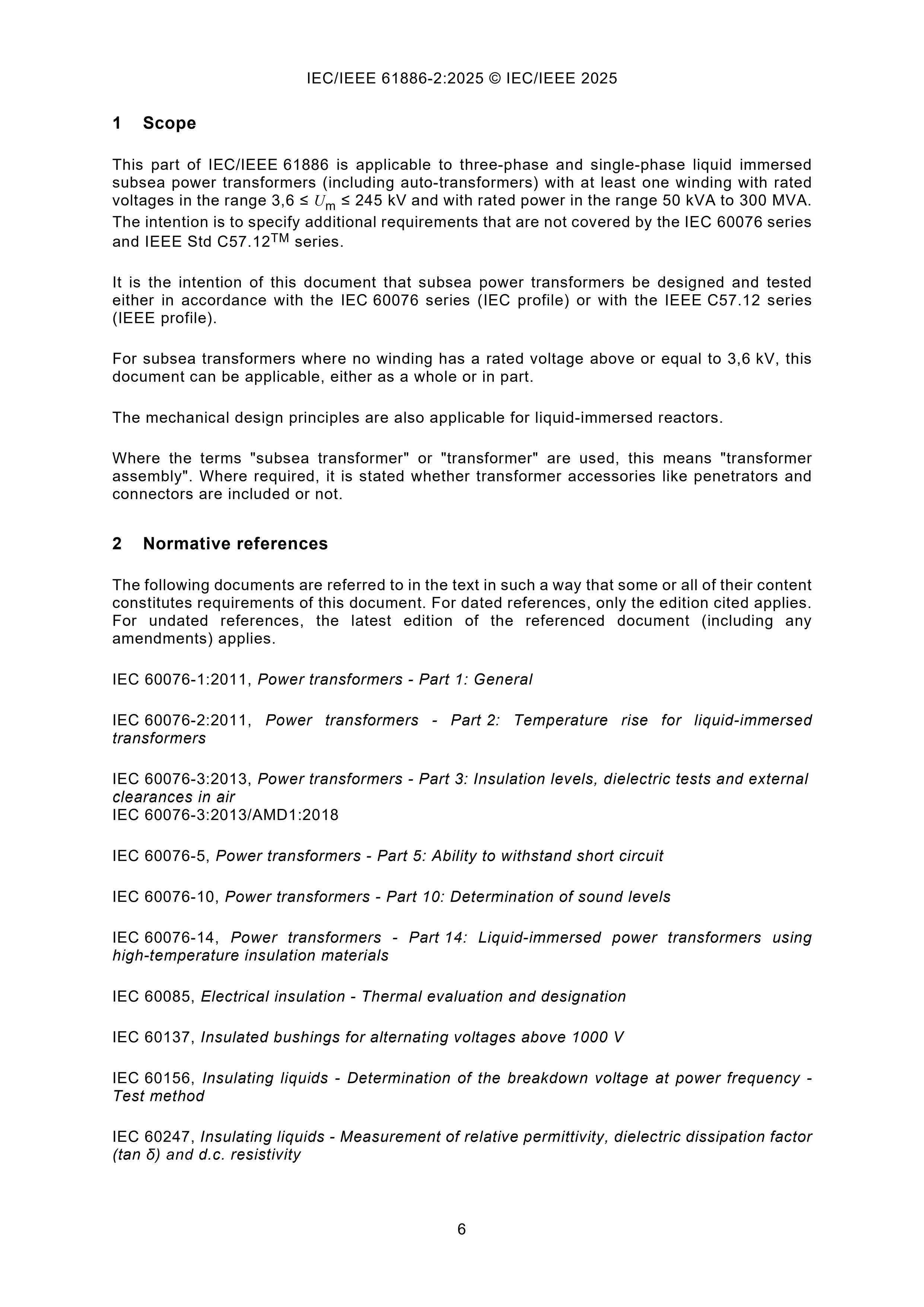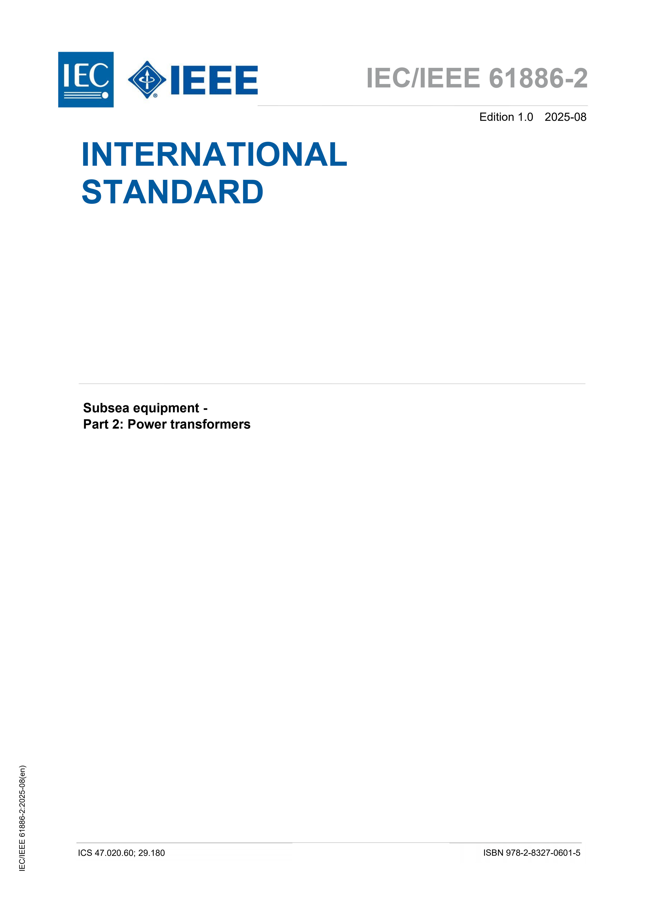 IEC/IEEE 61886-2 (Ed1.0) (08-2025) Subsea Equipment - Part 2: Power Transformers 海底设备 - 第2部分:电力变压器