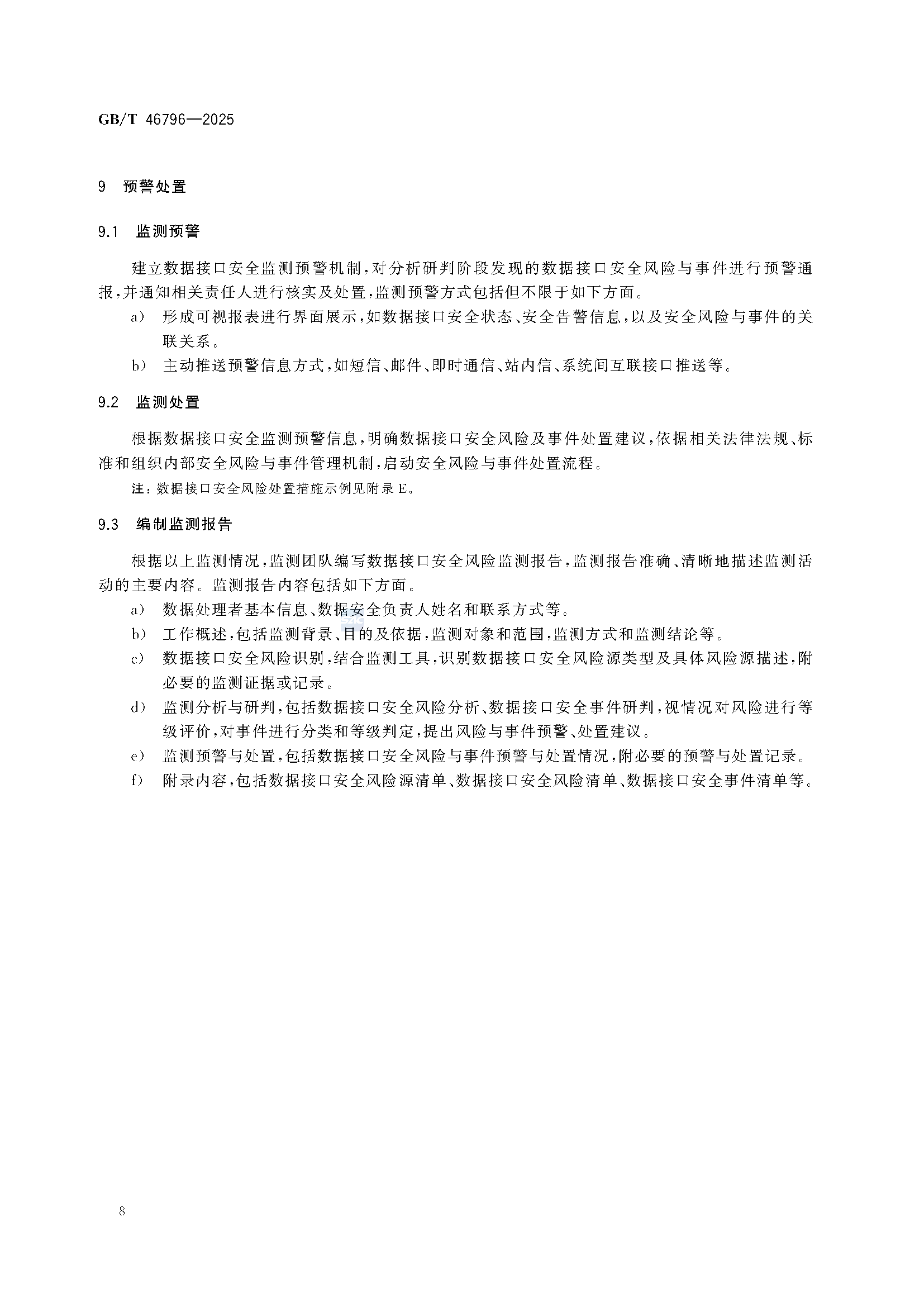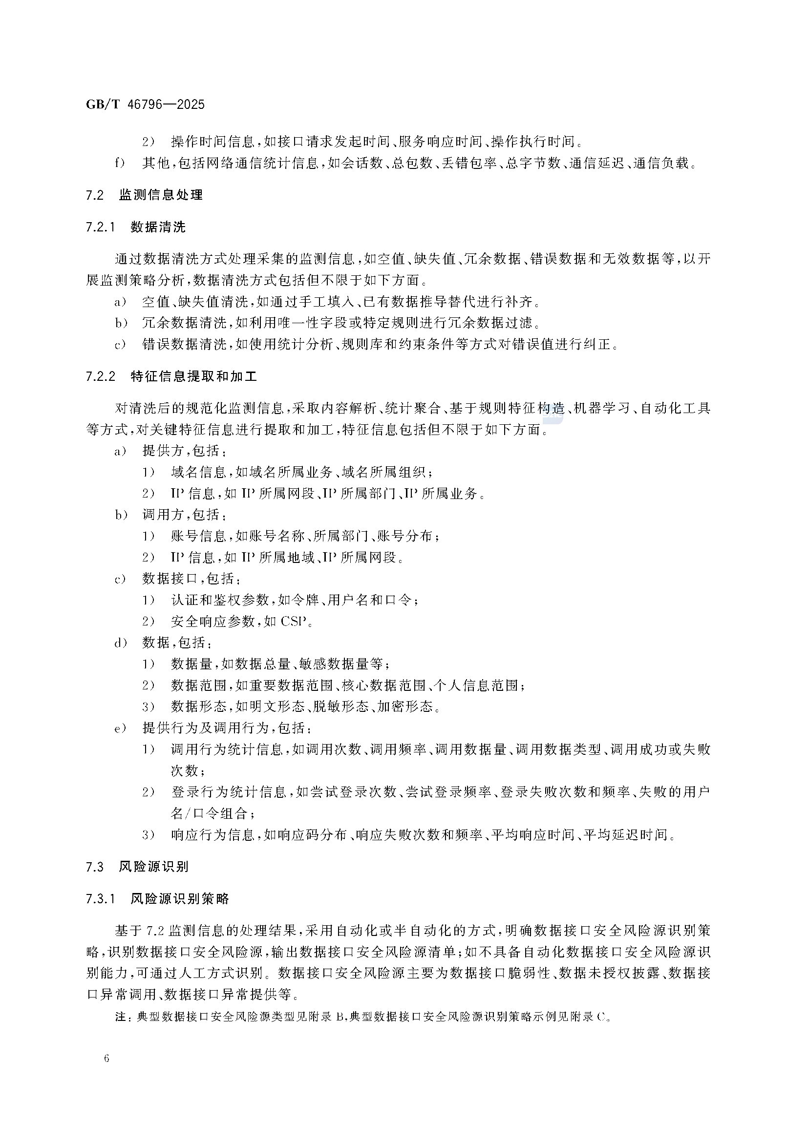 GB/T 46796-2025 数据安全技术 数据接口安全风险监测方法
