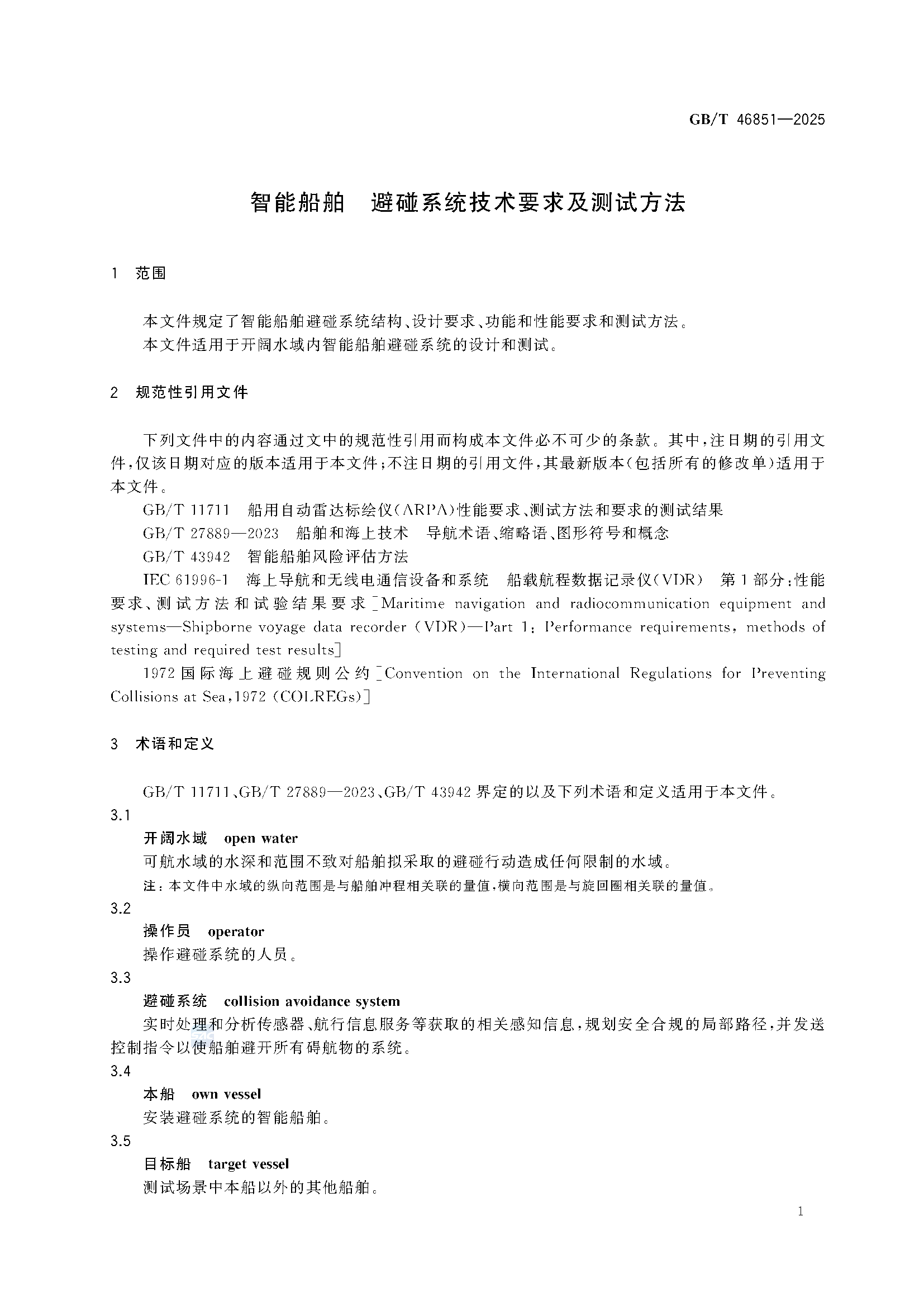 GB/T 46851-2025 智能船舶 避碰系统技术要求及测试方法