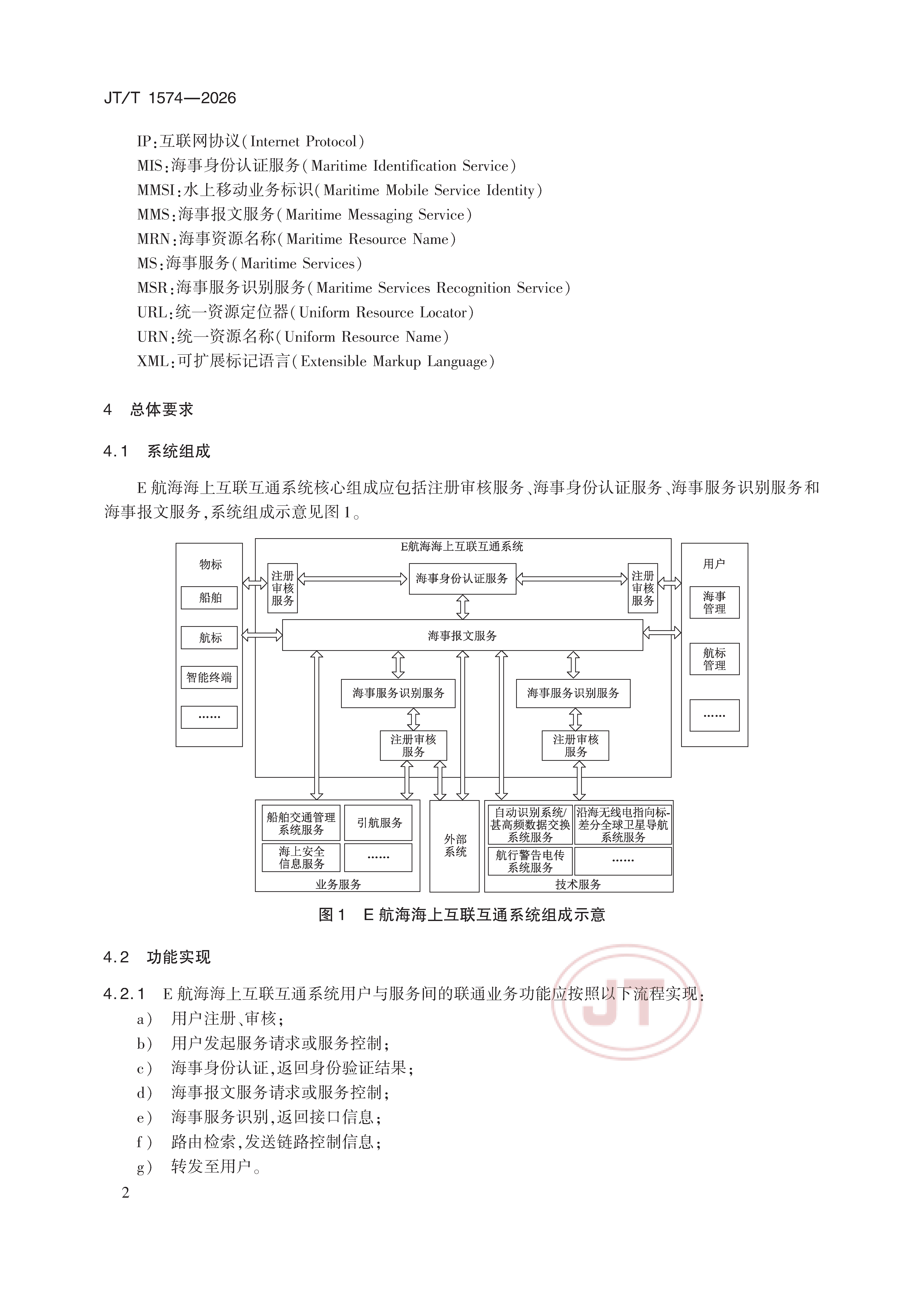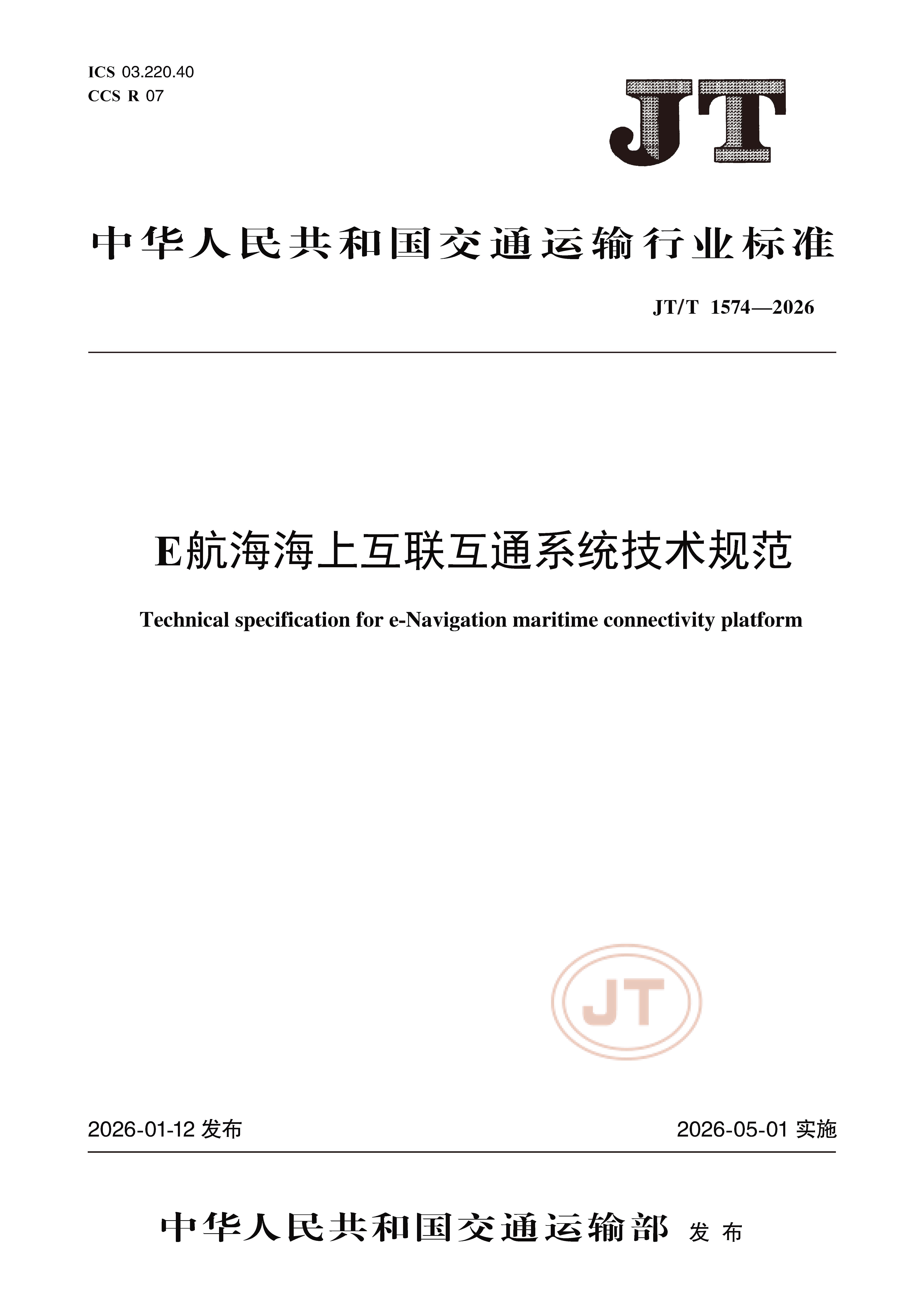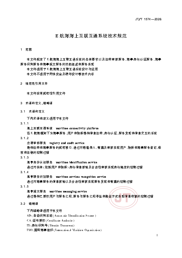 JT/T 1574-2026 E航海海上互联互通系统技术规范