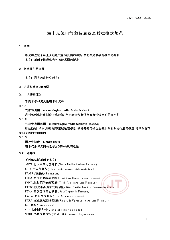 JT/T 1555-2025 海上无线电气象传真图及数据格式规范