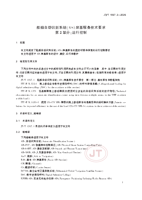 JT/T 1567.2-2026 船舶自动识别系统(AIS)岸基服务技术要求 第2部分:运行控制