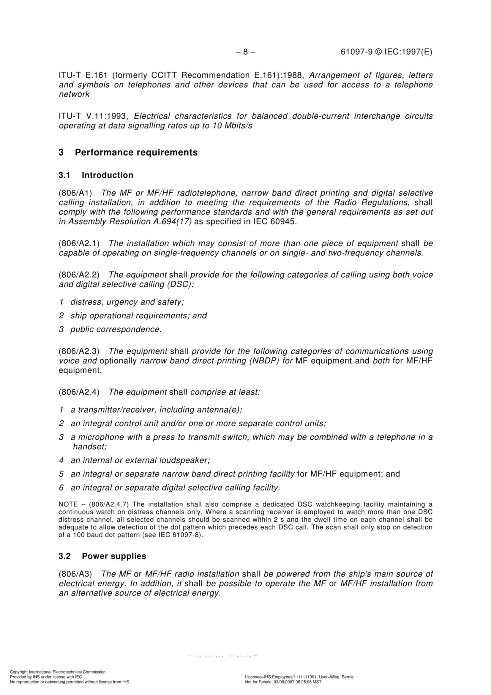IEC 61097-9 (2025)(Ed2.0) Global Maritime Distress and Safety System(GMDSS) - Part 9 Shipborne Transmitters and Receivers for use in the MF and HF Bands Surtable for Telephony, Digital Se-lective Calling(DSC) and Narrow Band Direct Printing(NBDP) - Operational and Performance Requirements, Methods of Testing and Required Test Results 全球海上遇险与安全系统(GMDSS) - 第9部分 适合于电话、数字选择性呼叫(DSC)和窄带直接印字电报(NBDP)的在中频(MF)和高频(HF)频段使用的船载发射和接收器 - 操作和性能要求、测试方法及所要求的测试结果