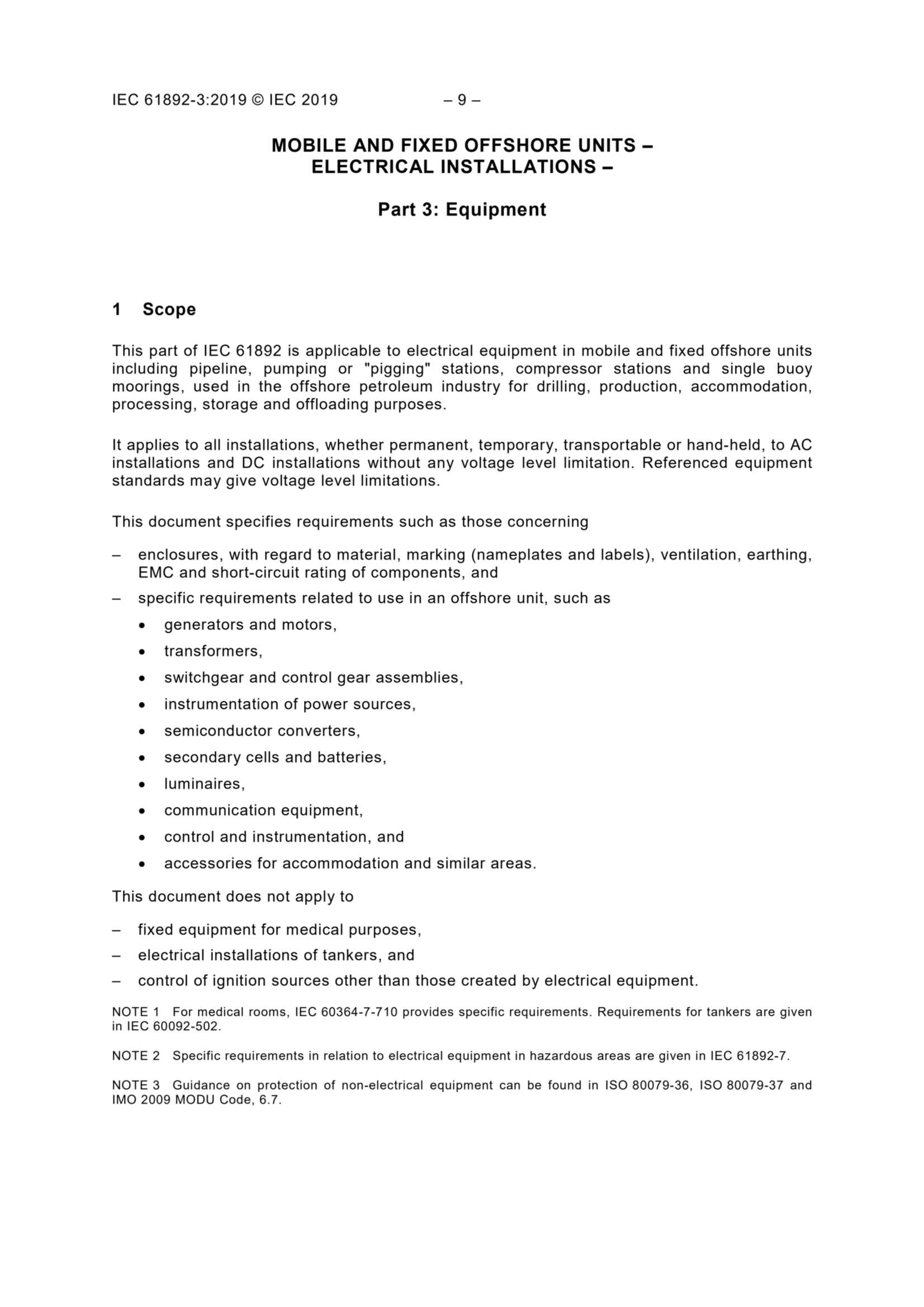 IEC 61892-3 (2019)(Ed4.0) Mobile and Fixed Offshore Units - Electral Installations - Part 3 Equipment 移动式和固定式近海设施 - 电气装置 - 第3部分 设备